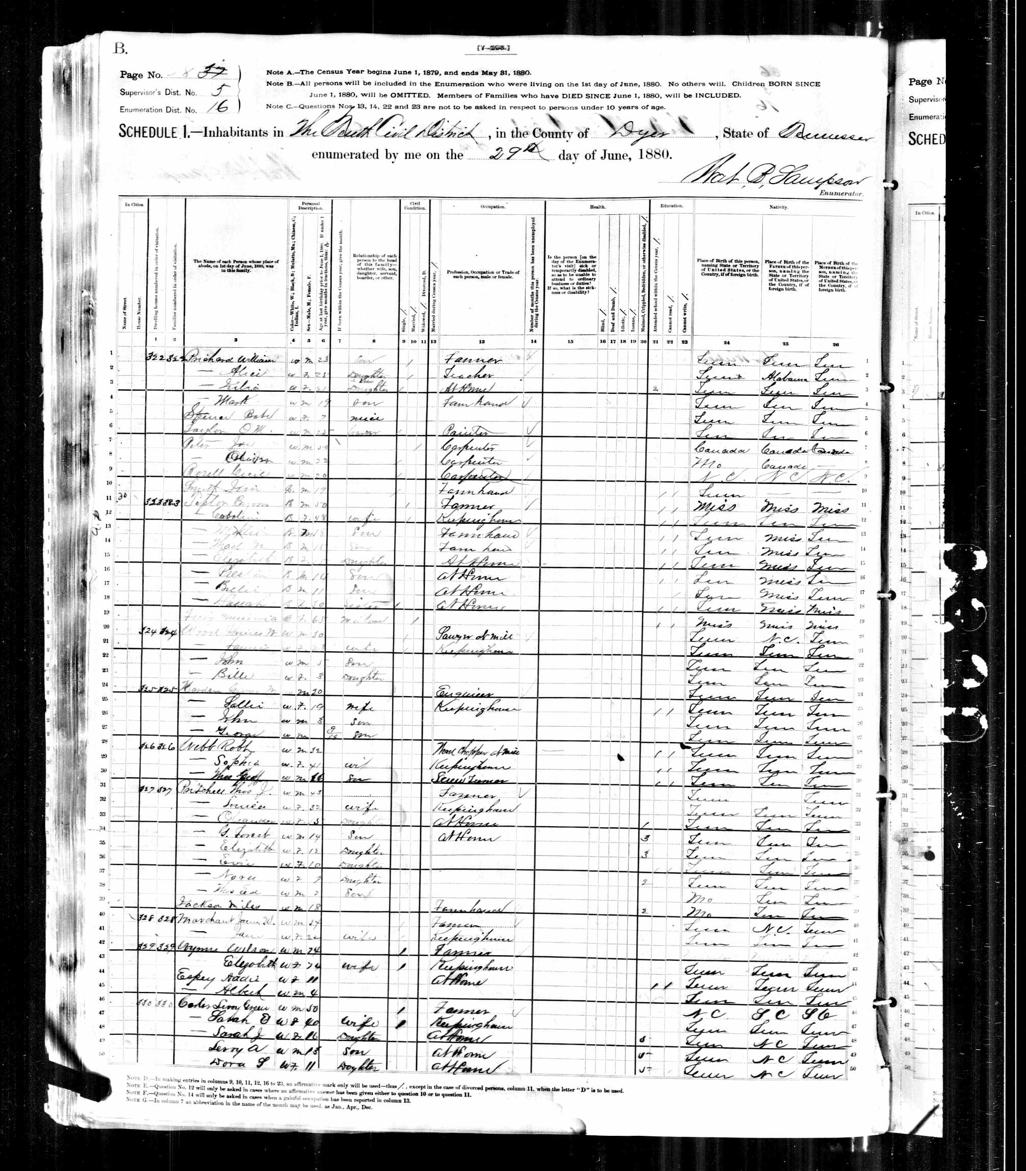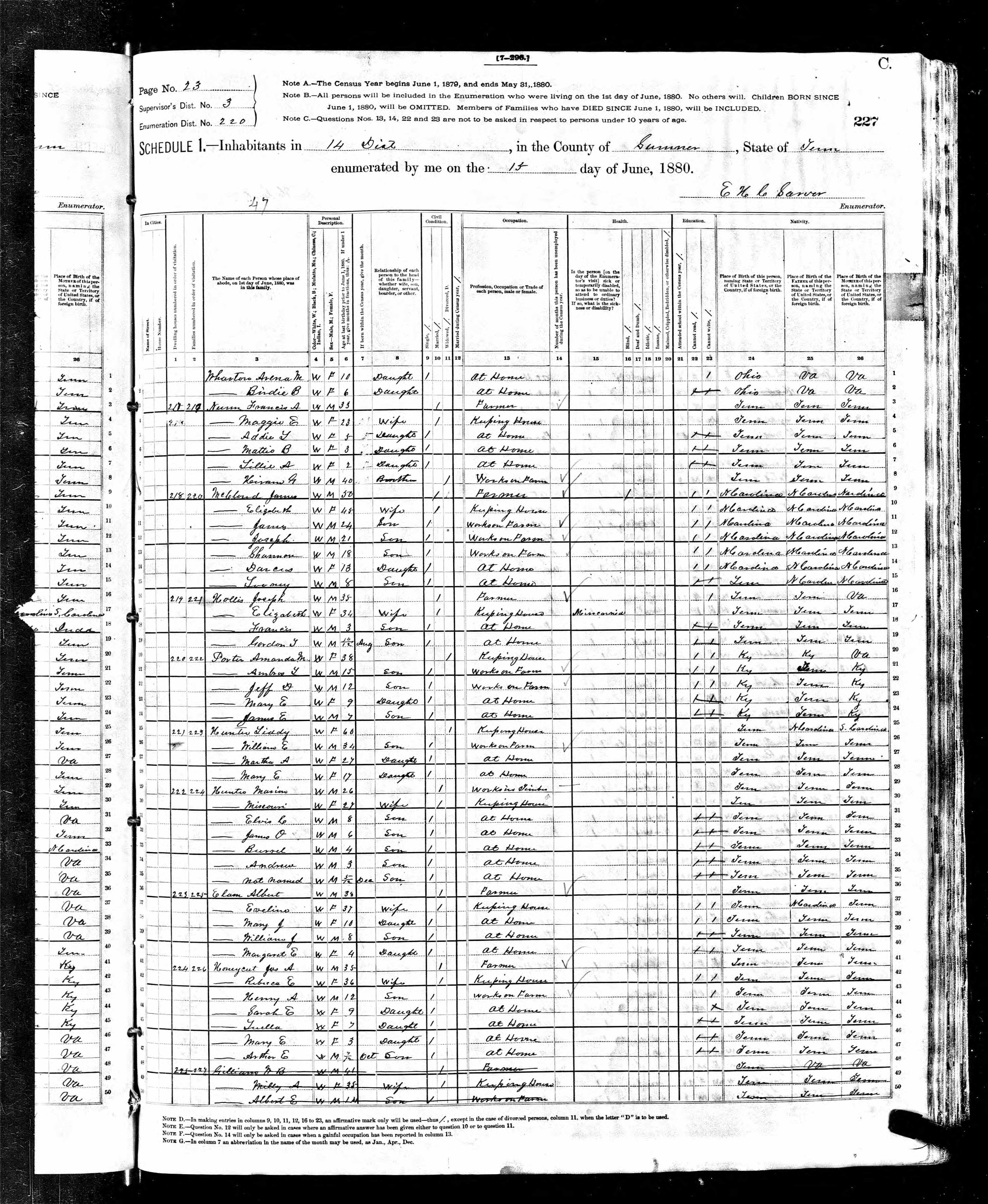 216. “United States Census,” 1880, TN, Sumner, District 14, 23C, 3, 220, T9, 1282, 227, 10th Decennial Census Office, Bureau of the Census, US Dept. of Commerce, United States of America, June 15, 1880, E N C Sarver.