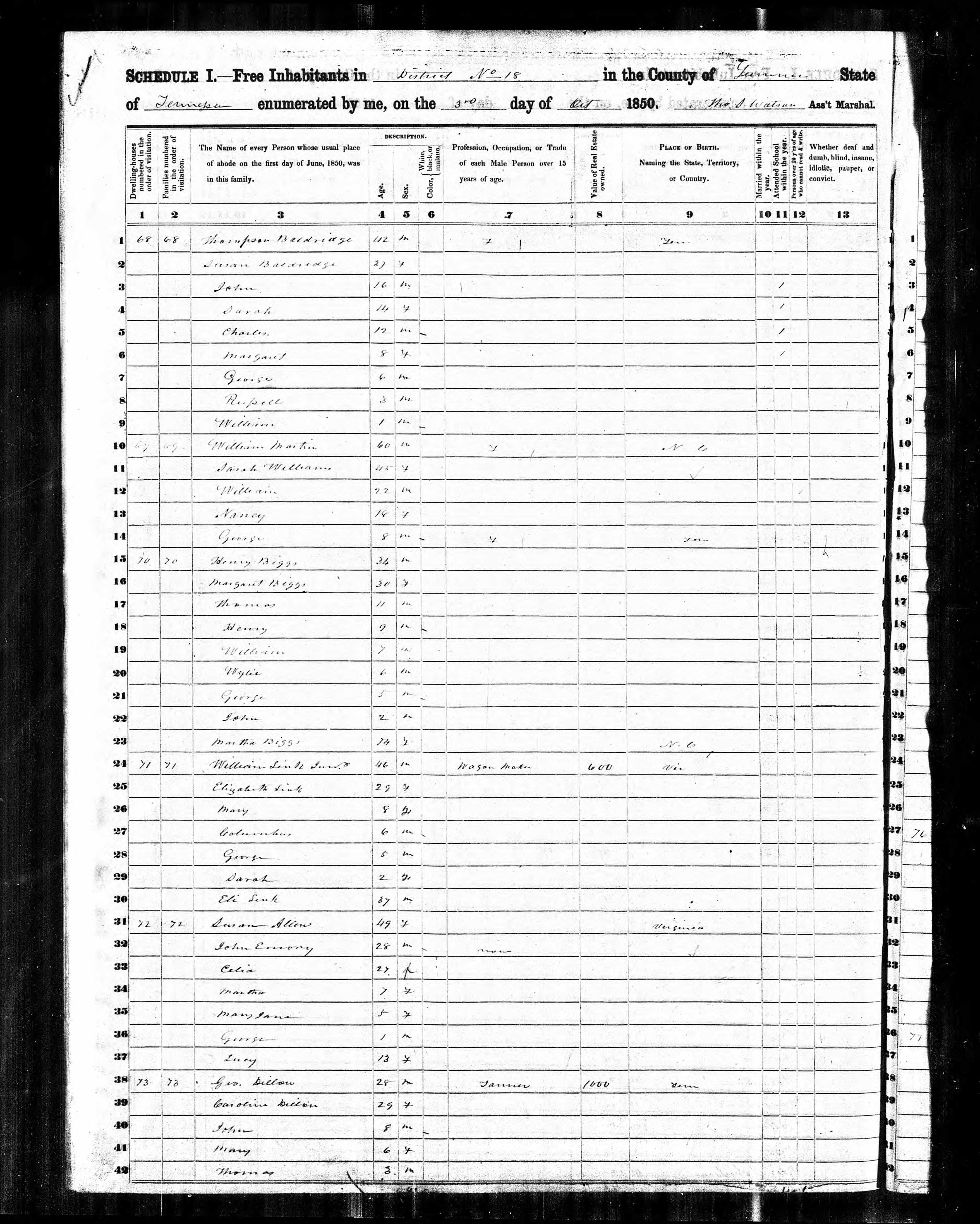 229. “United States Census,” 1850, TN, Sumner, District 18, 218B, M432, 897, 442, Bureau of the Census, US Dept. of Commerce, United States of America, October 3, 1850, Tho S Watson.