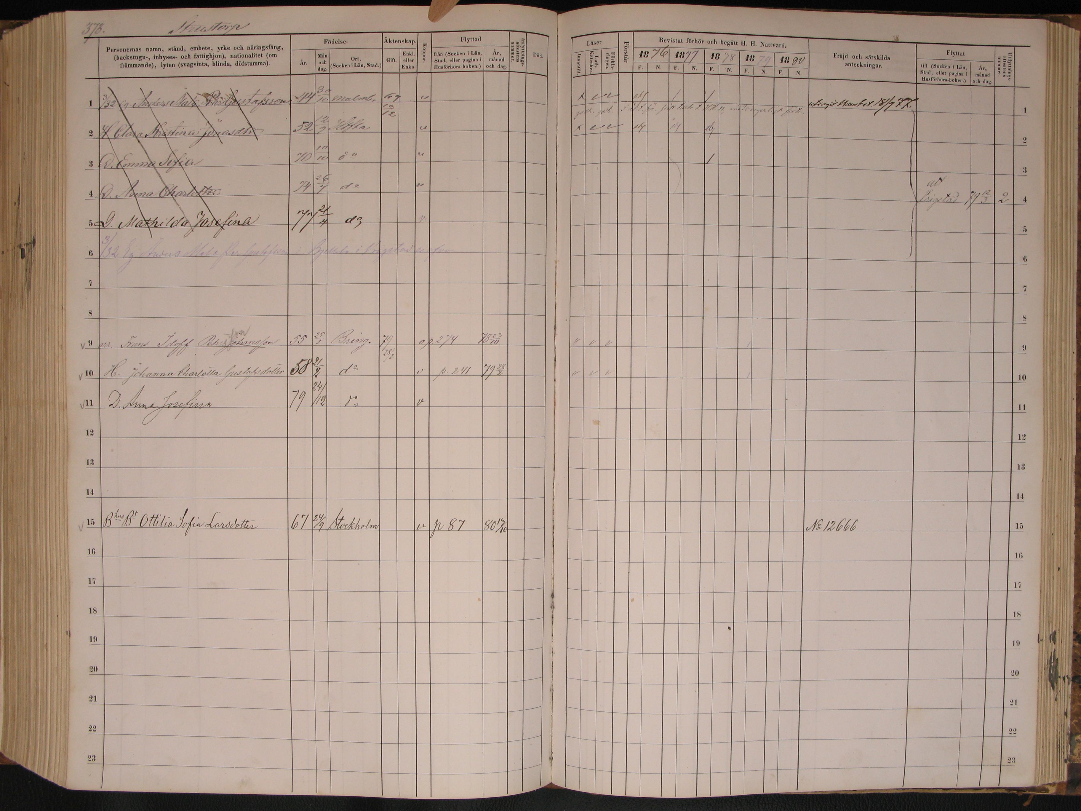 1060. “Sweden Household Examination Books,” Bringetofta AI 15, 1876 - 1880, Strustorp, Bringetofta, Jönköpings, Småland, Sweden, Scandinavia, 373.