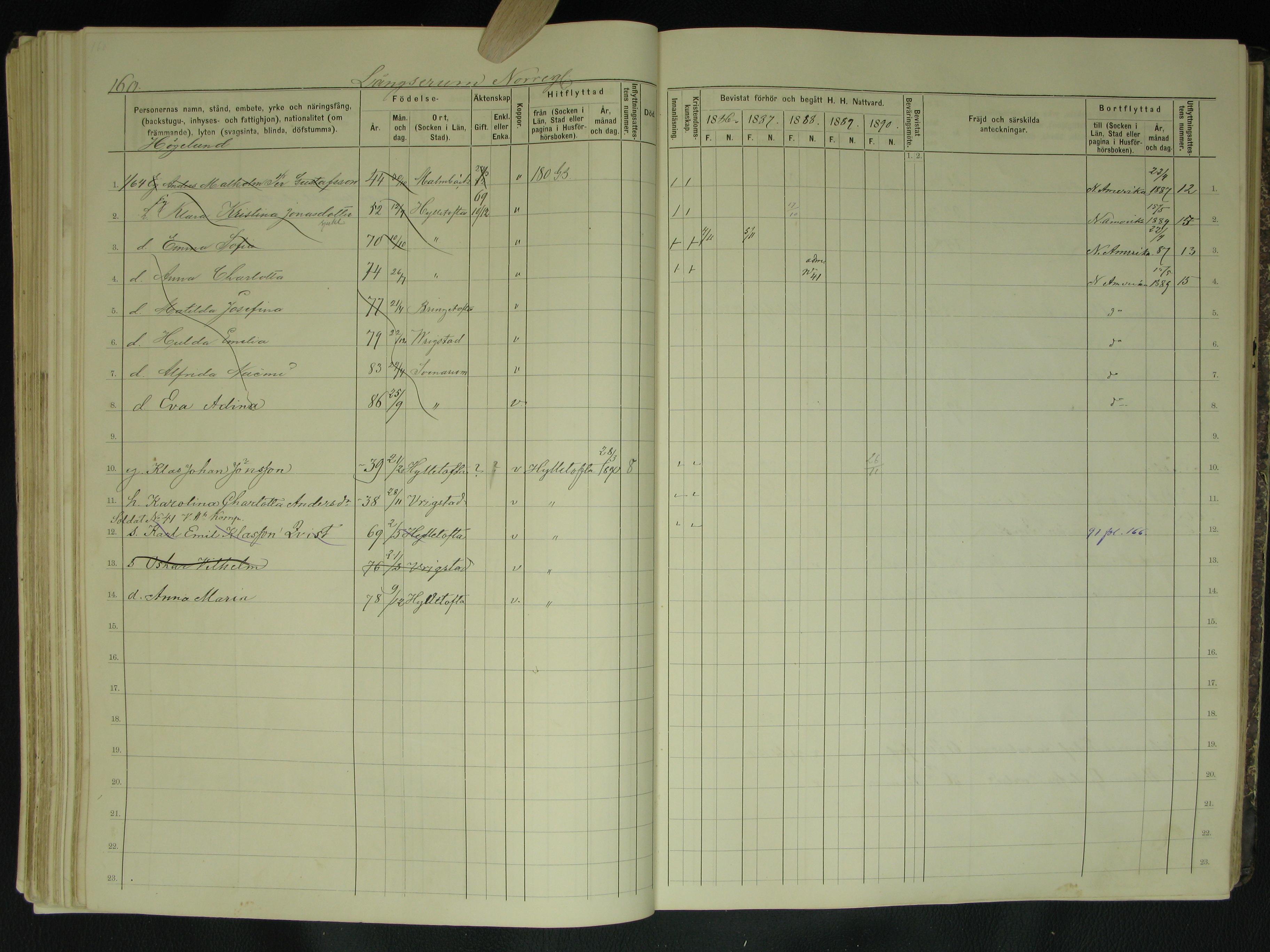 1061. “Sweden Household Examination Books,” Svenarum AI 14, 1886 - 1890, Långserum Norregård, Svenarum, Jönköpings, Småland, Sweden, 160.
