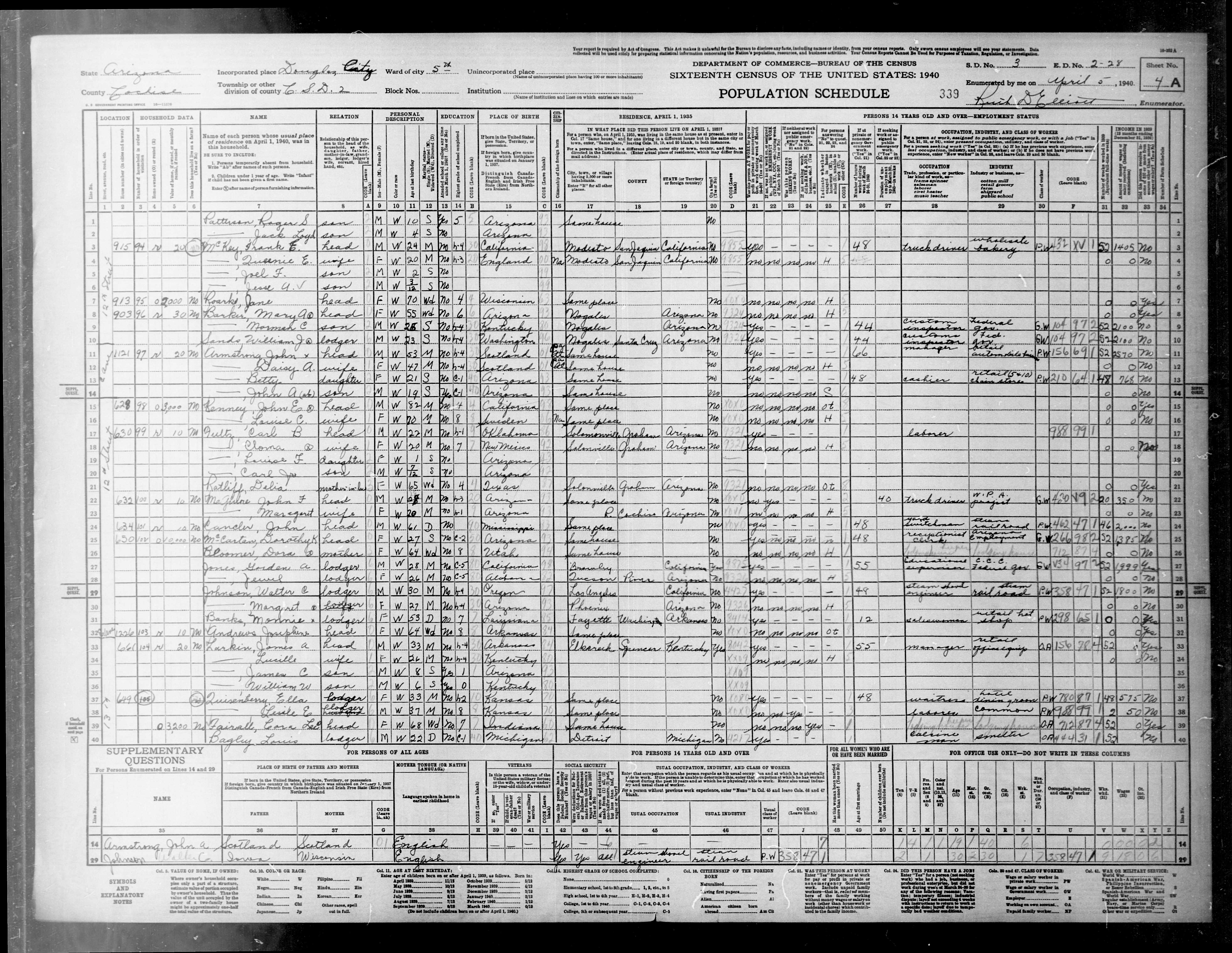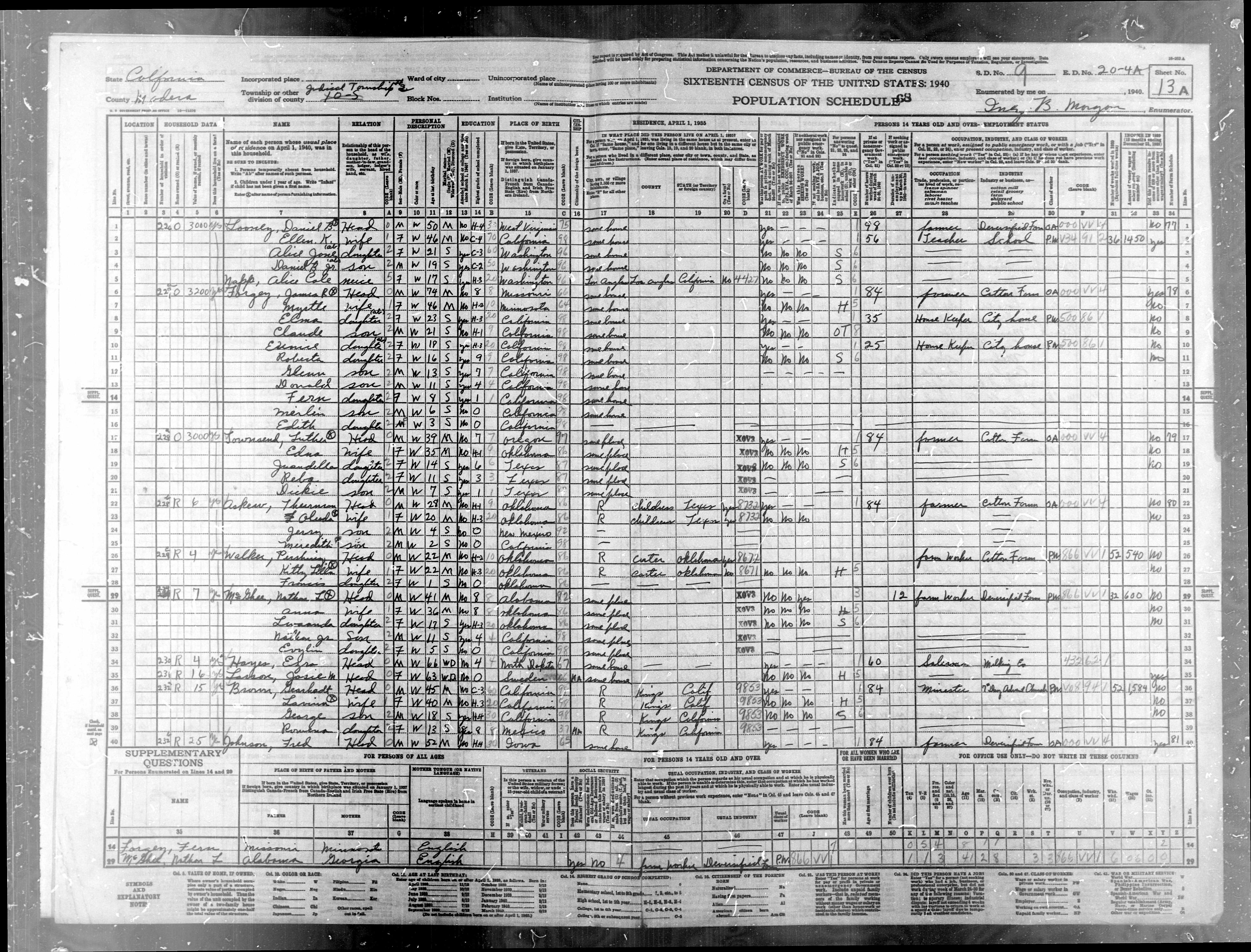 1063. “United States Census: 1940,” Bureau of the Census, US Dept. of Commerce, United States of America, 1940, CA, Madera, Judicial Township 2, Inez B Morgan, 13A, 9, 20-4, T627, 260, 140.