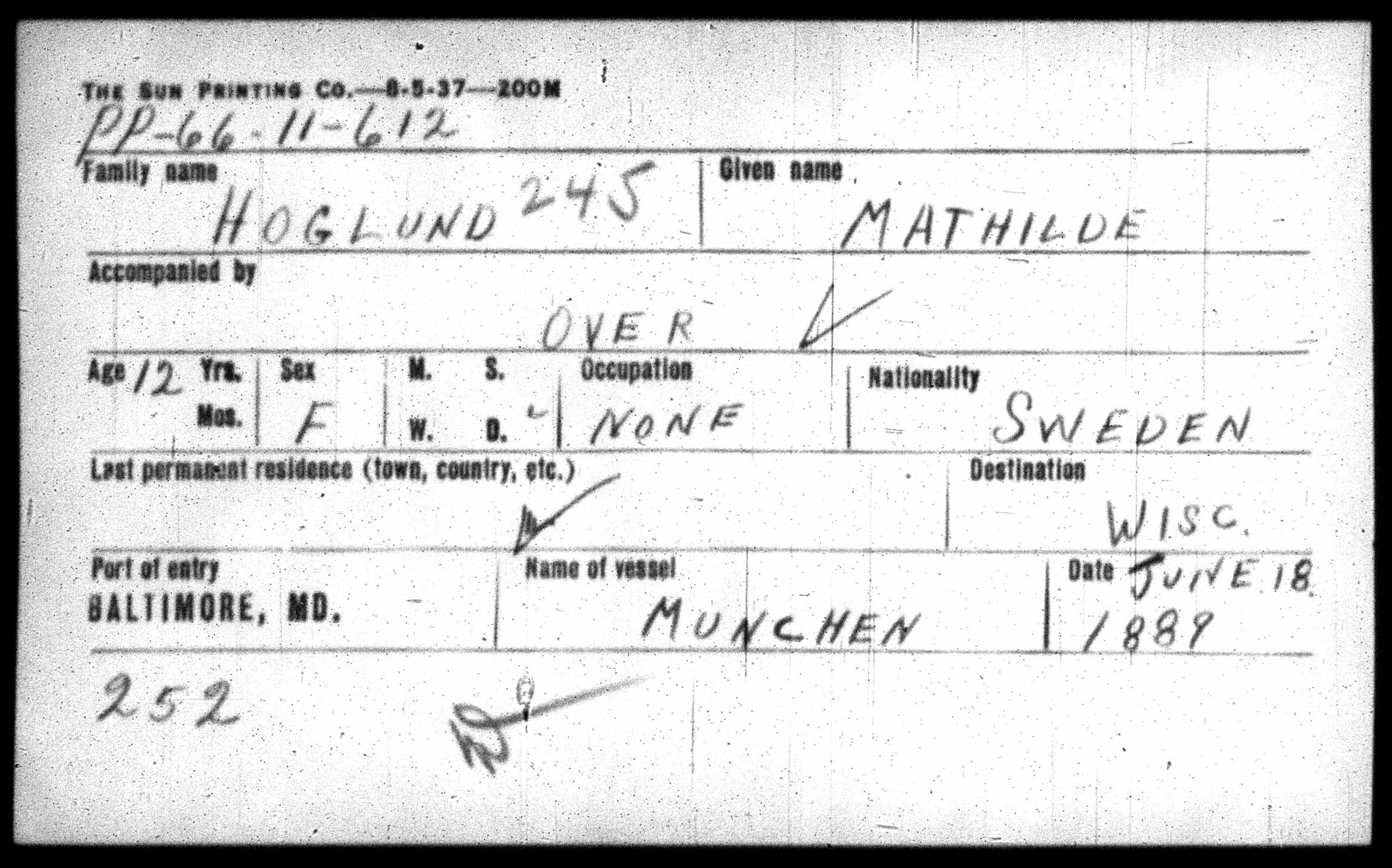 Files (6): ClaraHoglund_ImmigrationCard_1889, AnnaHoglund_ImmigrationCard_1889, MathildeHoglund_ImmigrationCard_1889, HuldaHoglund_ImmigrationCard_1889, AlfriedeHoglund_ImmigrationCard_1889, EvaHoglund_ImmigrationCard_1889