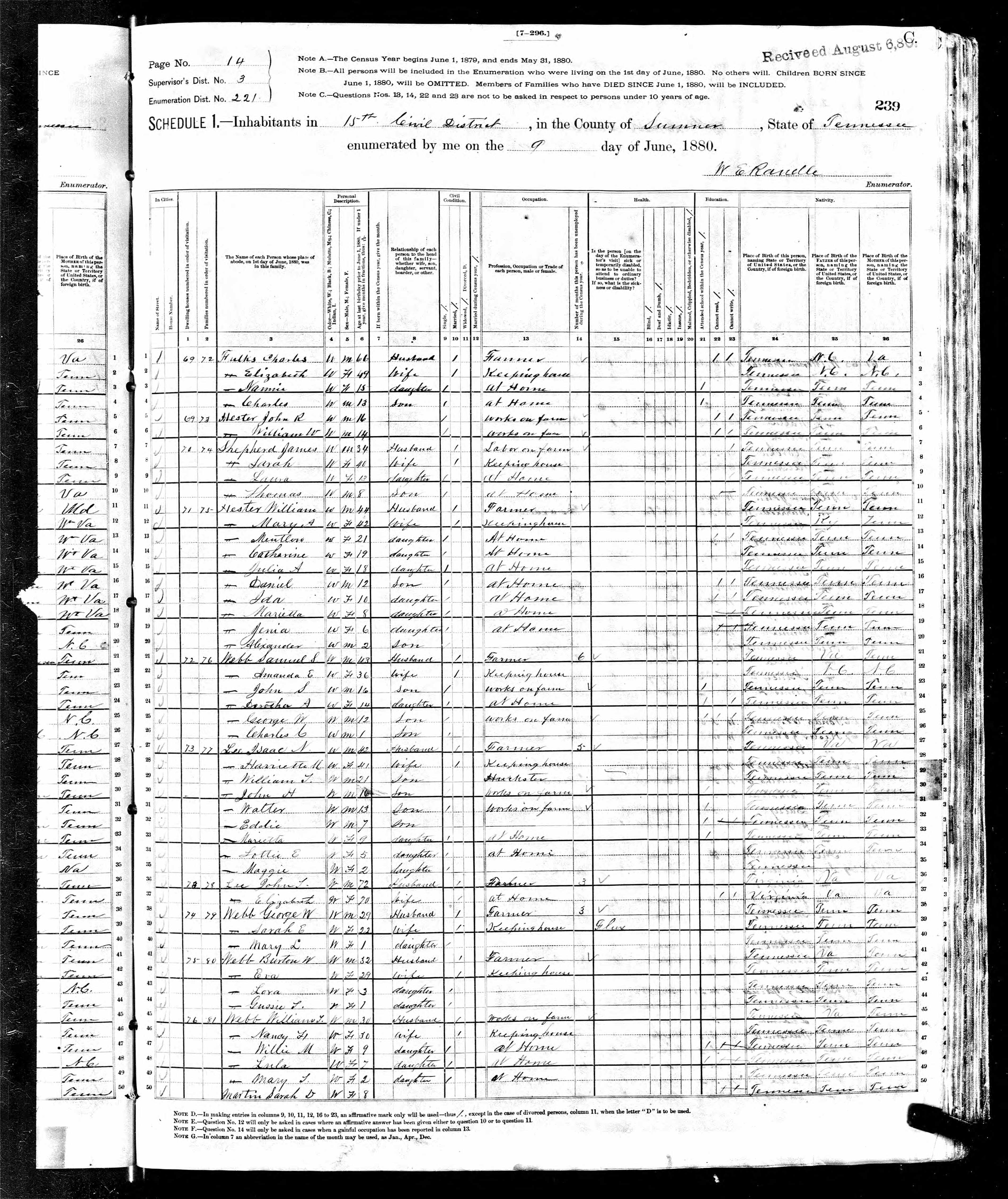 File: 1880 TN Sumner County Dist 15 p14