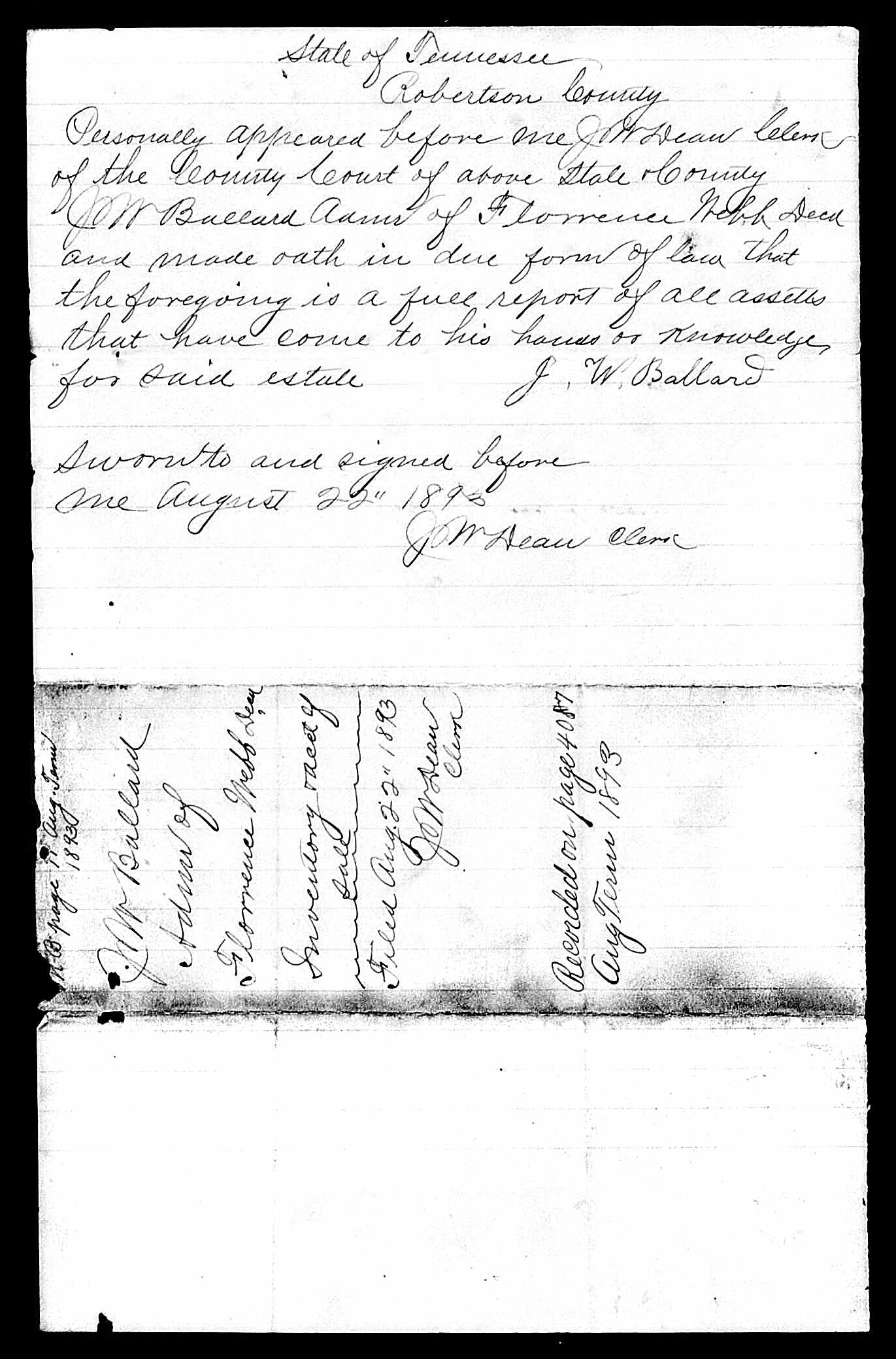 71. Florence Webb, “Tennessee, Wills and Probate Records, 1779-2008,” October 17, 1895, Executor Bond was established on April 3, 1893.