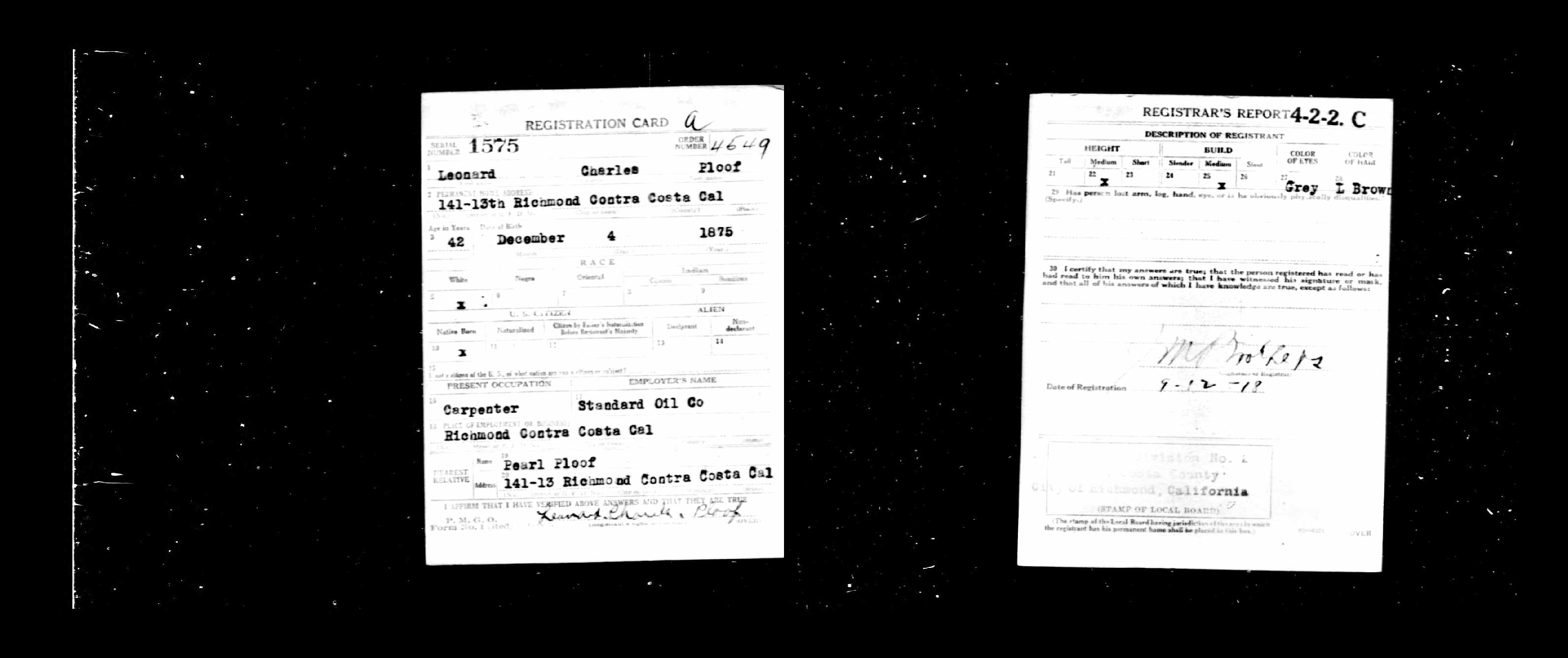 363. World War I, 1918, California, 1575, Ploof, Leonard Charles.