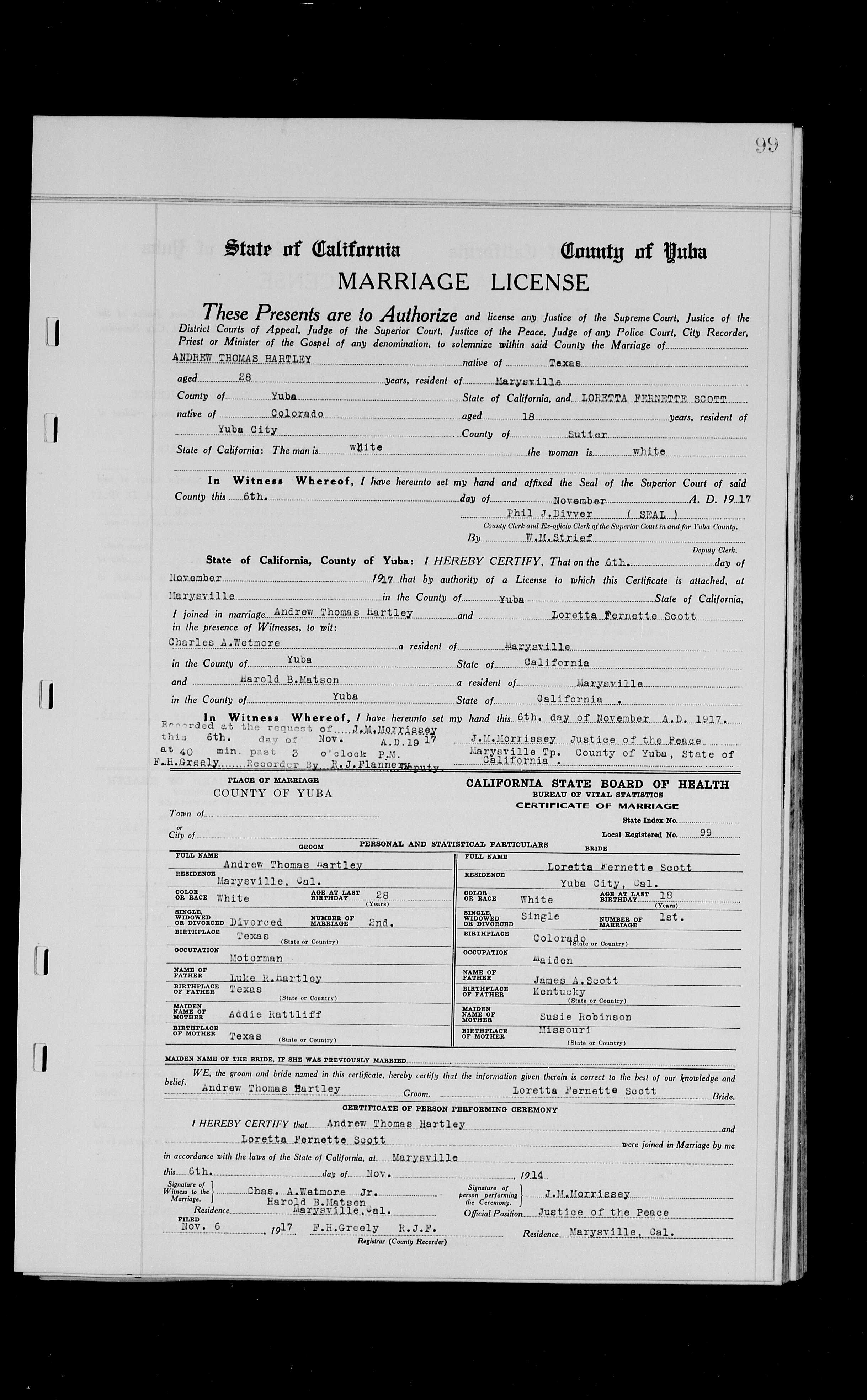 418. “California Death Index; 1940-1997,” California Department of Health Services, Vital Statistics Section, http://vitals.rootsweb.com/ca/death/search.cgi, https://familysearch.org/search/collection/2015582, Says born May 24, 1901 in Wyoming.