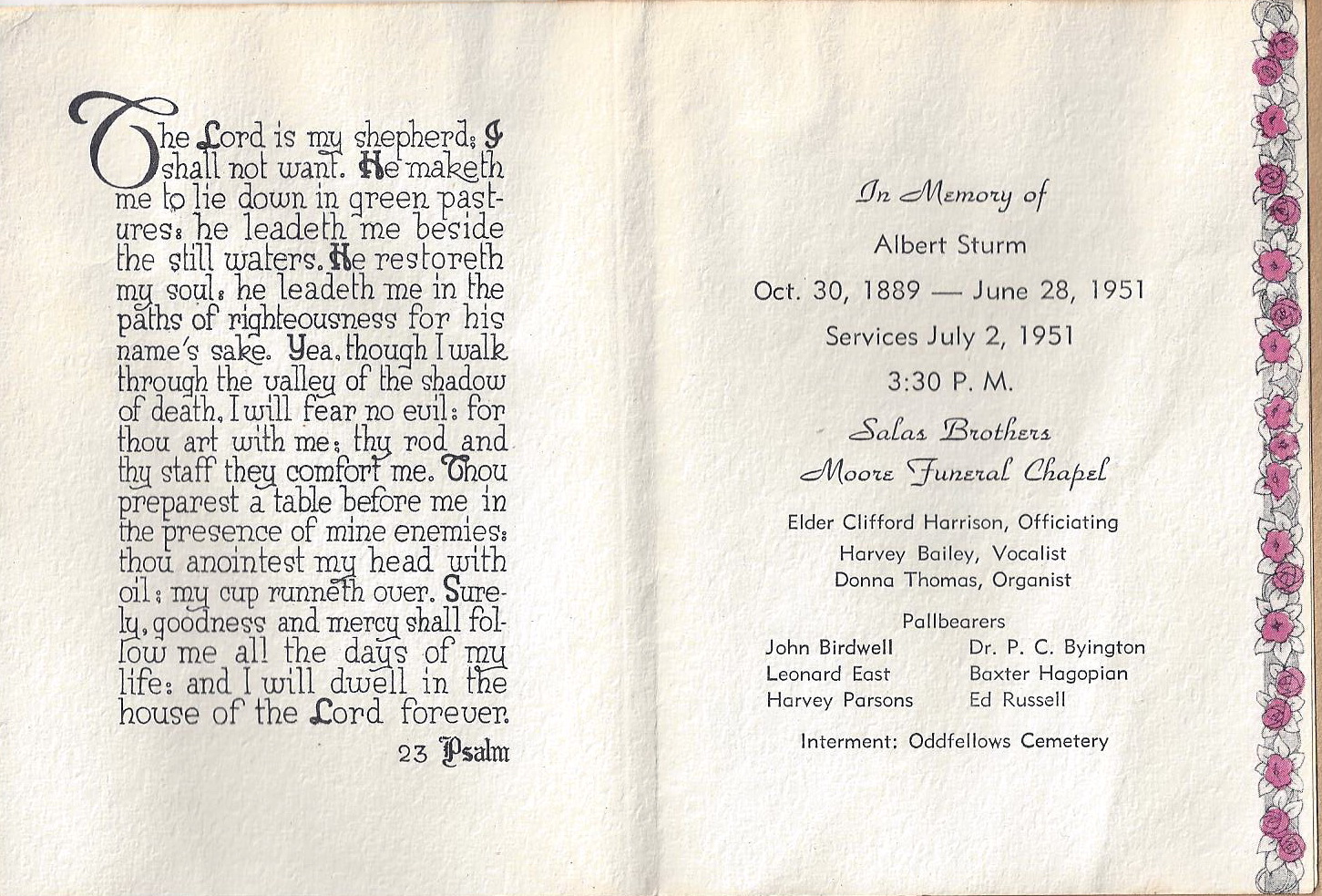 File: Albert Sturm Funeral program