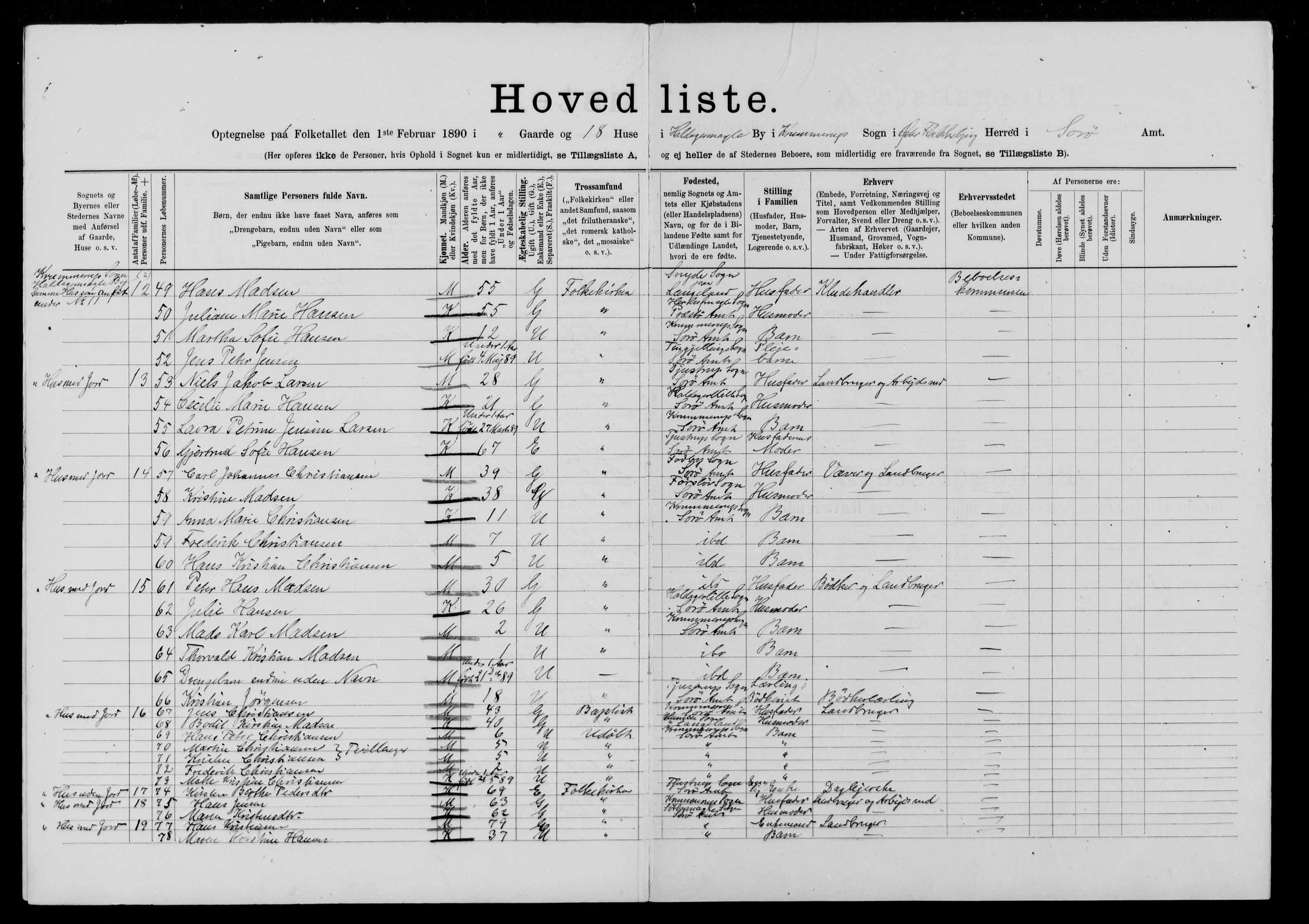 843. “Denmark Census,” 1890, Sorø, Øster Flakkebjerg, Krummerup, Haldagermagle, 480.