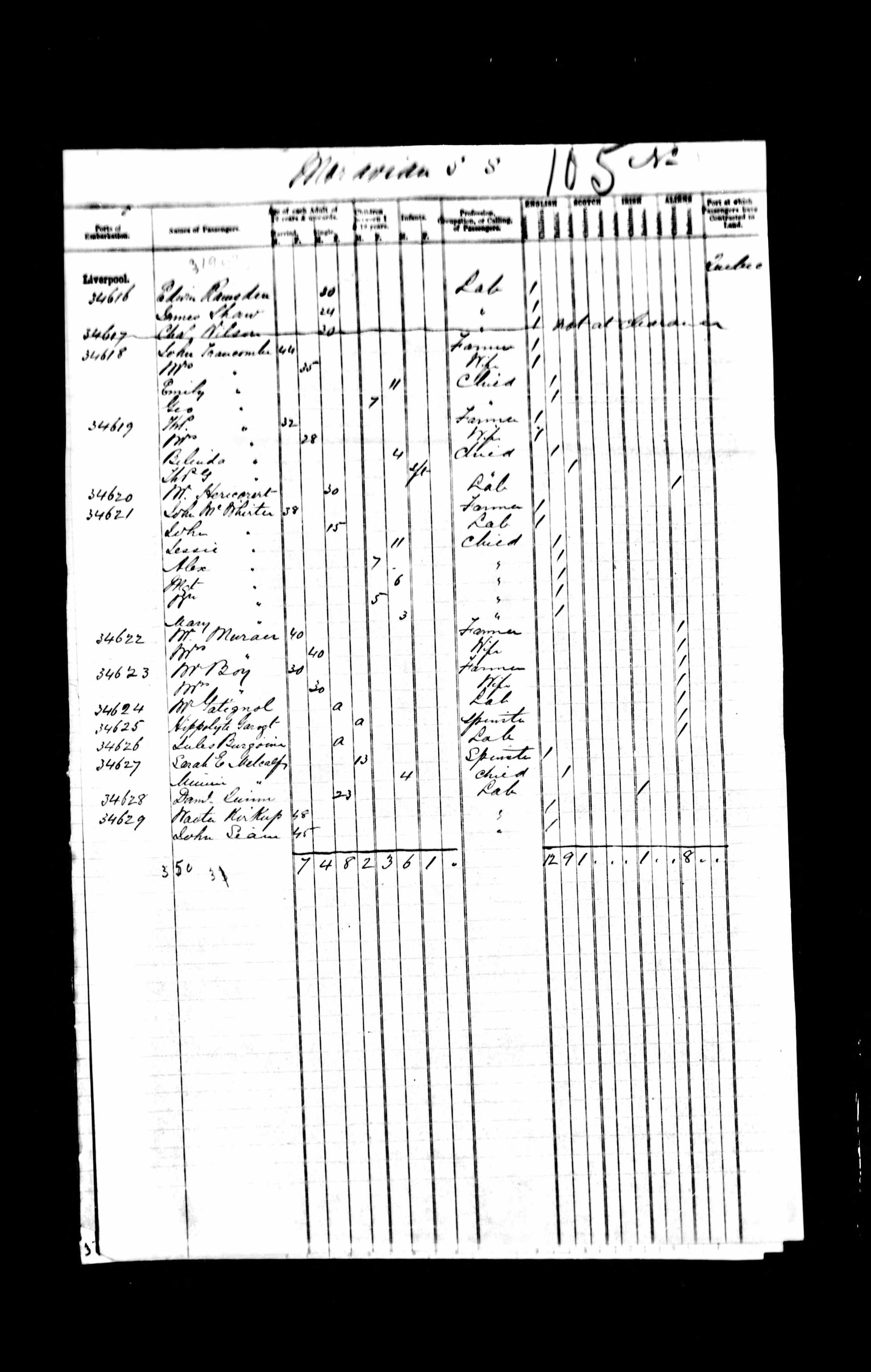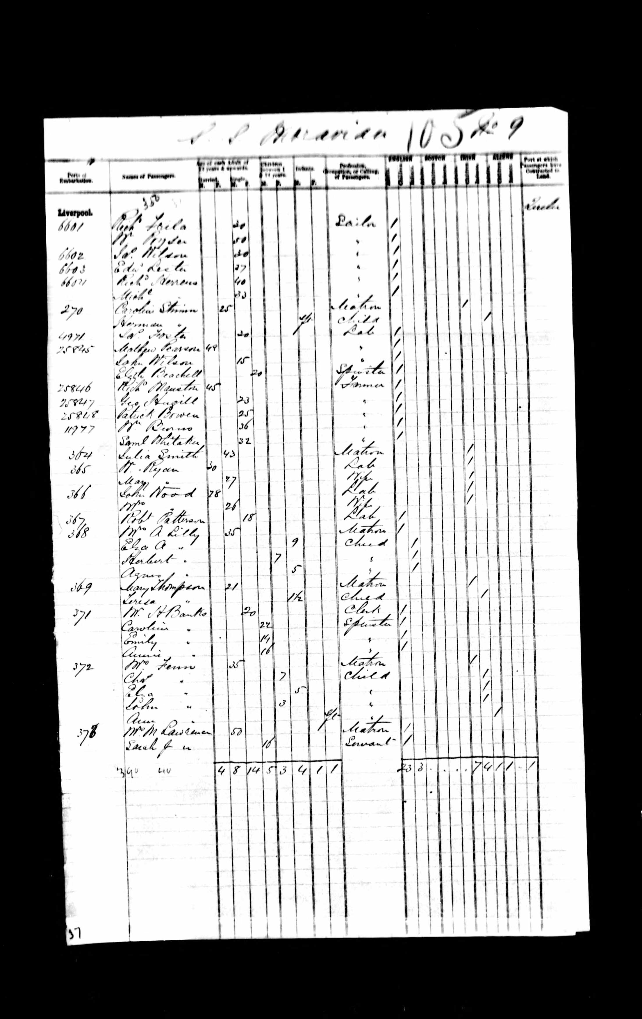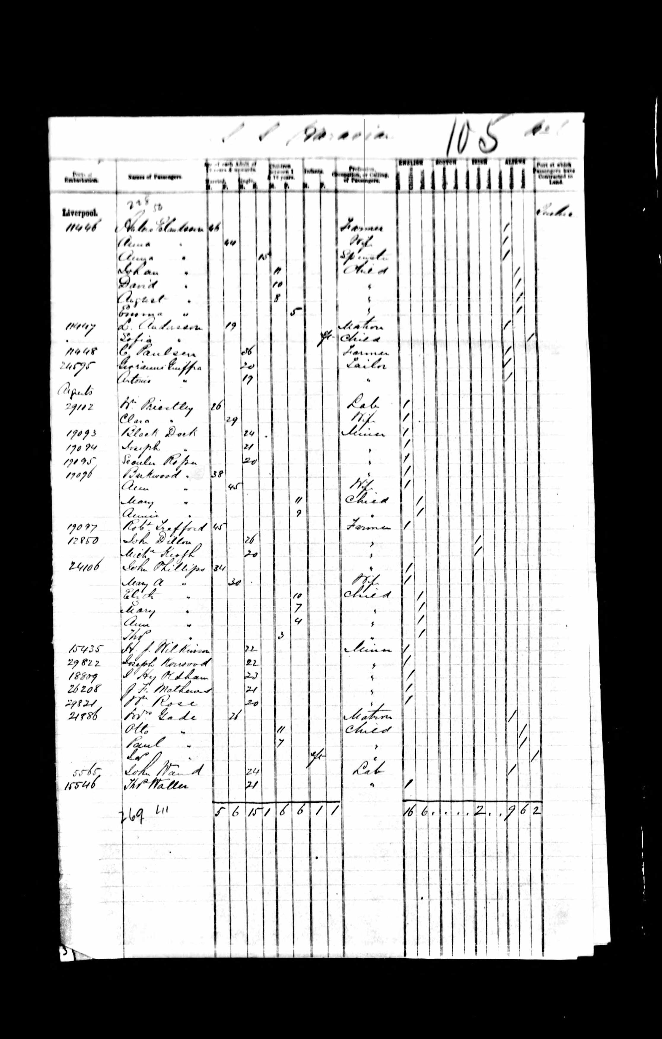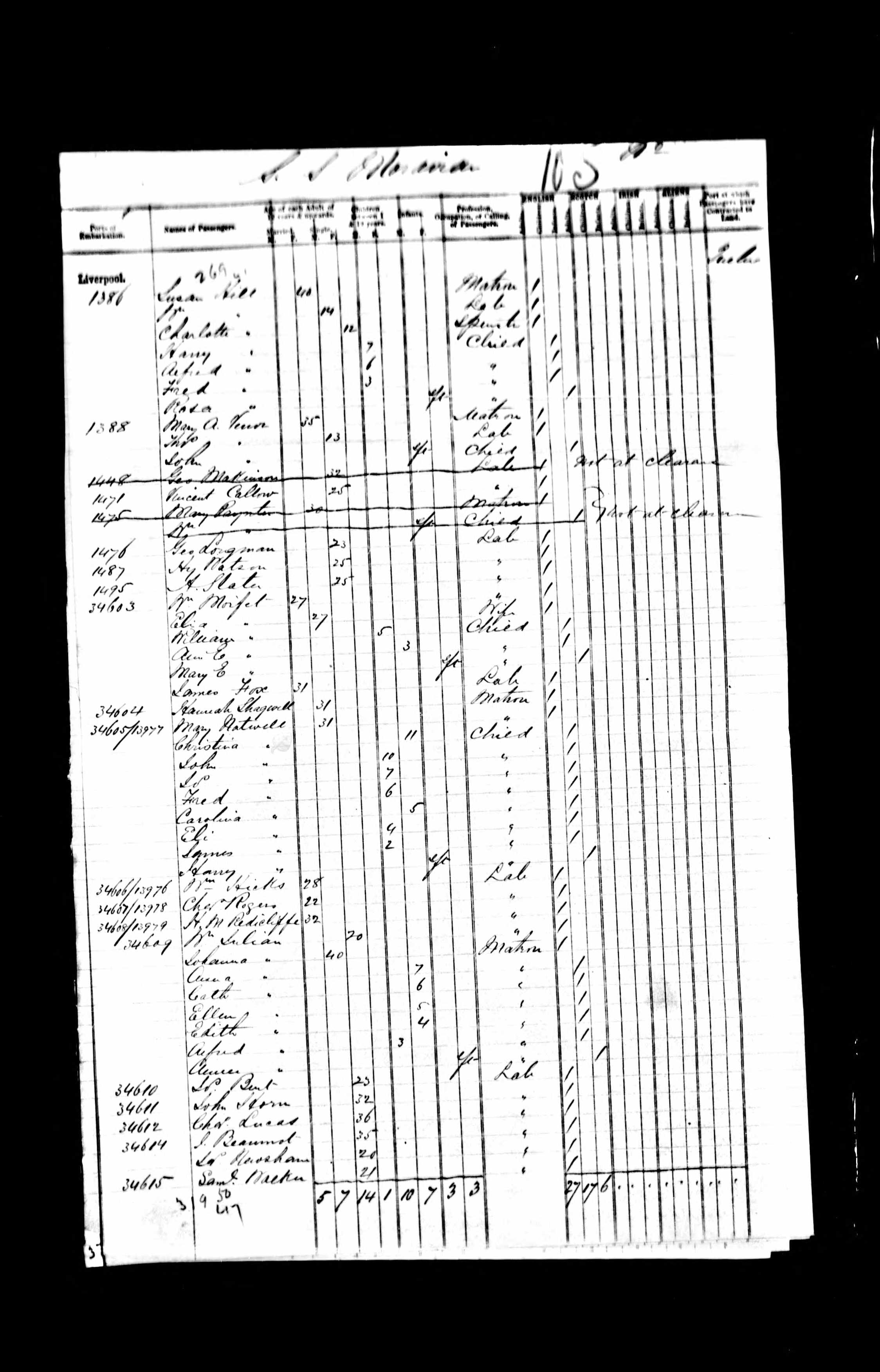 Port of Embarkation listed as Liverpool.