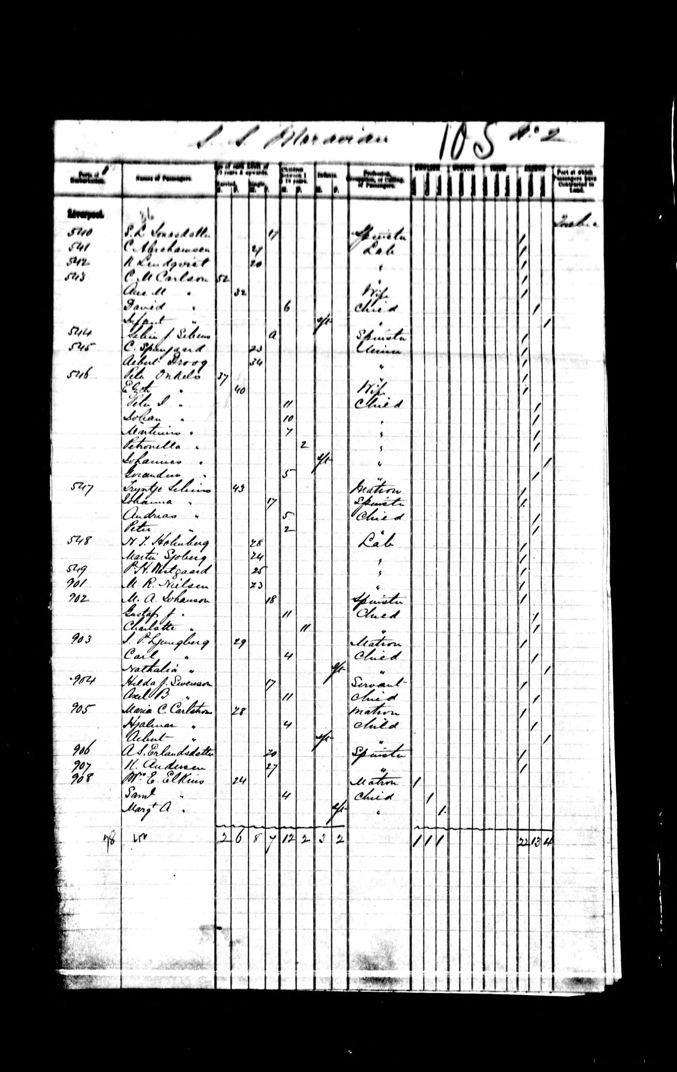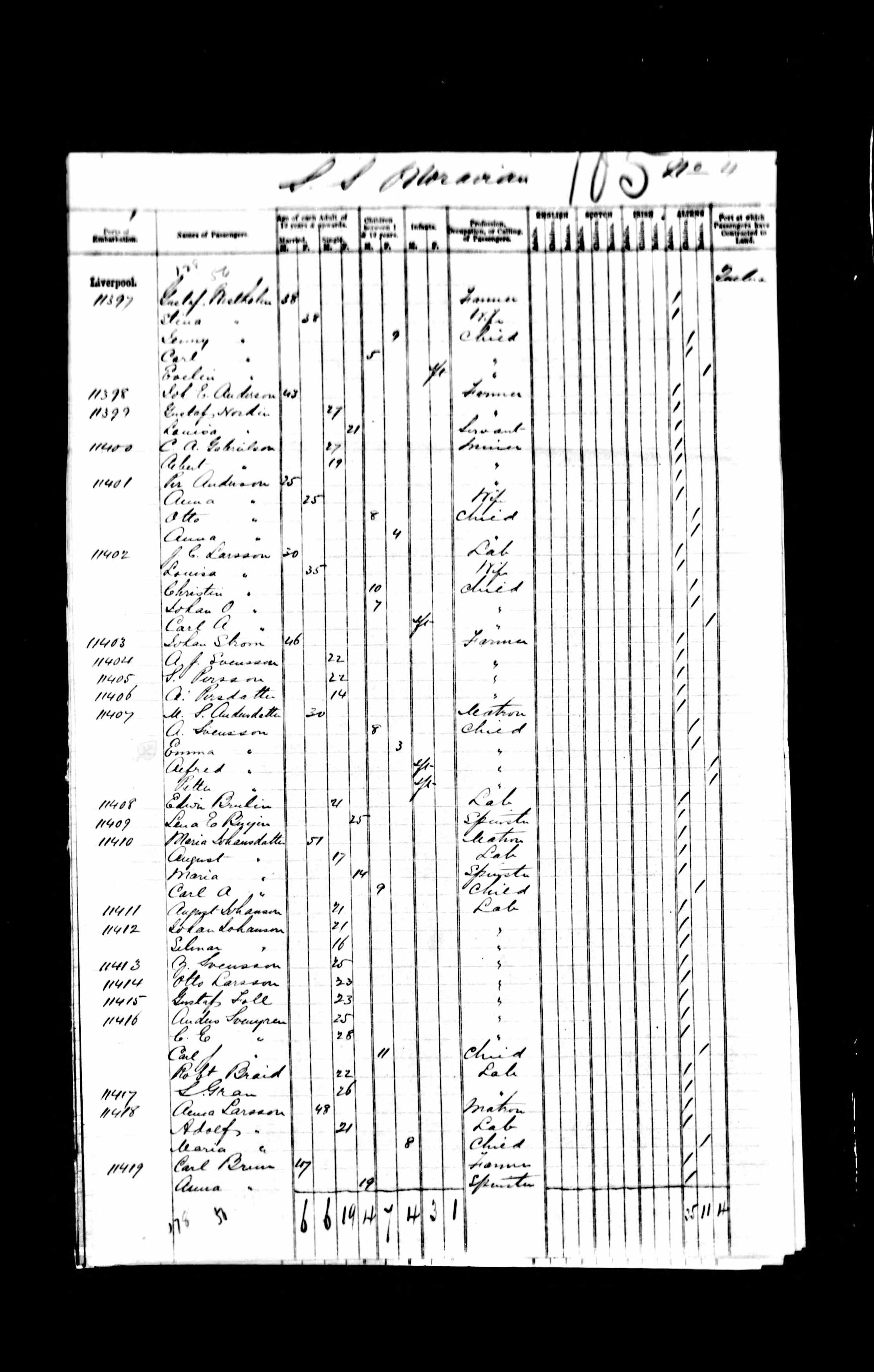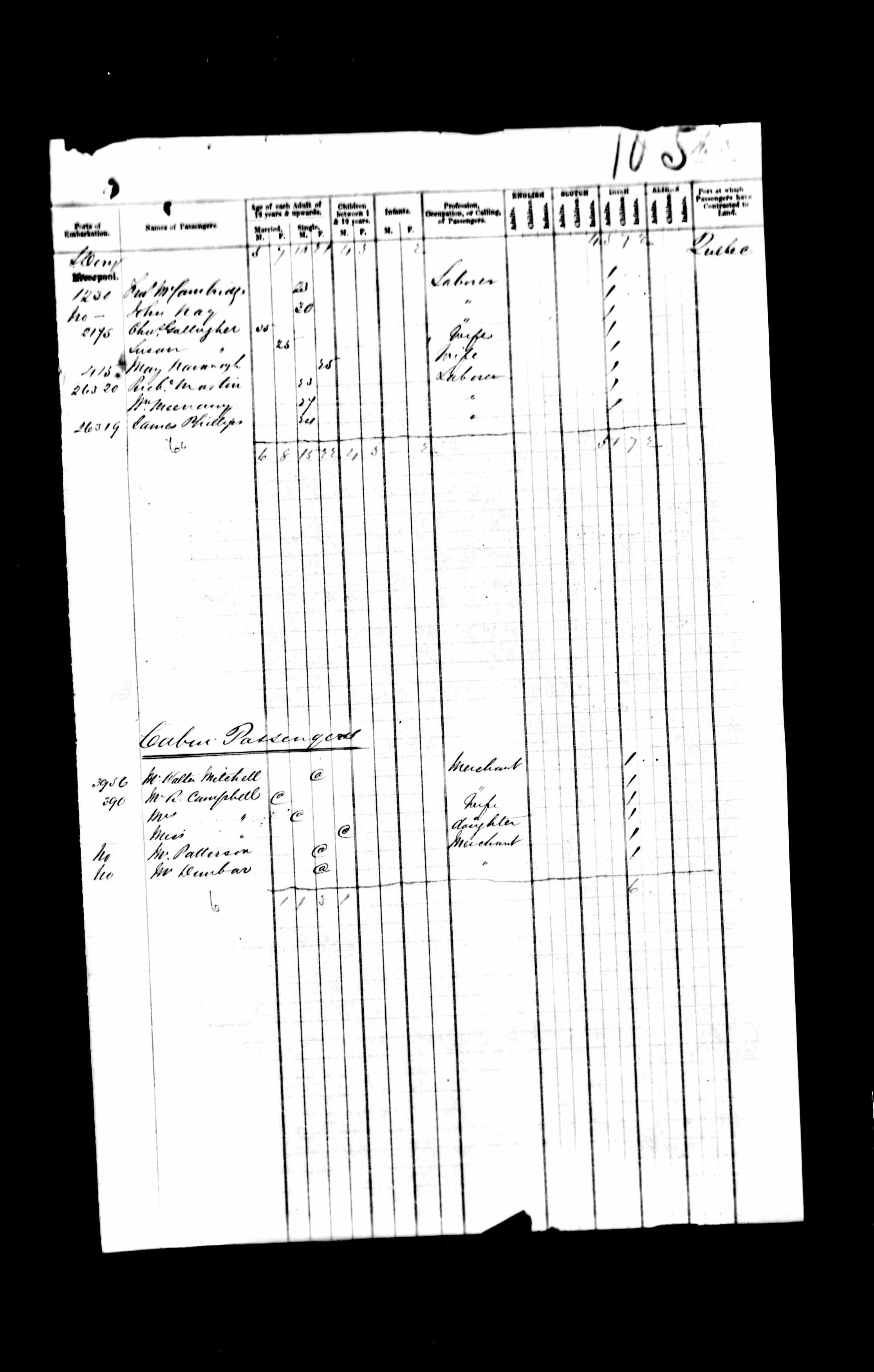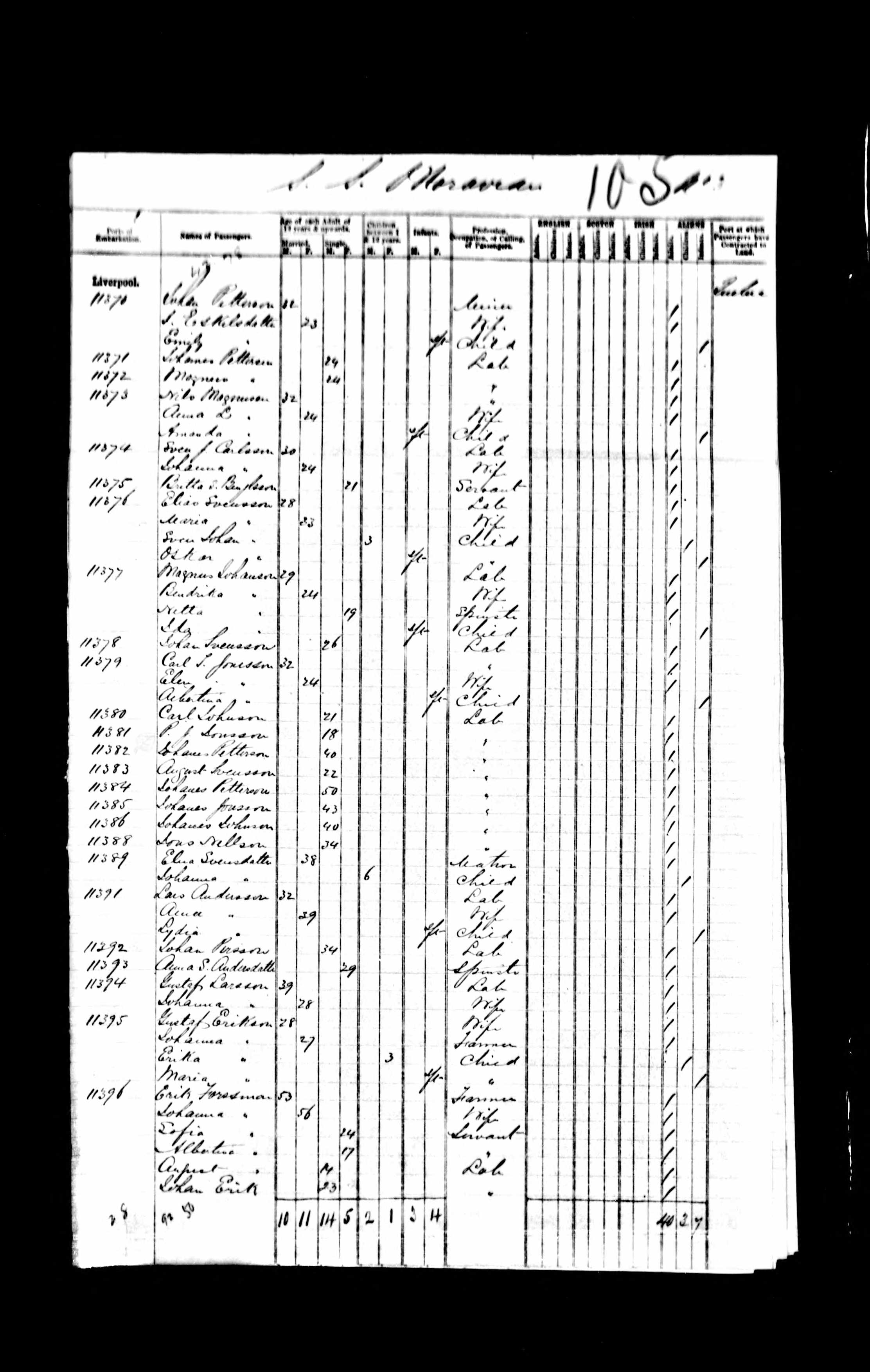 Port of Embarkation listed as Liverpool.