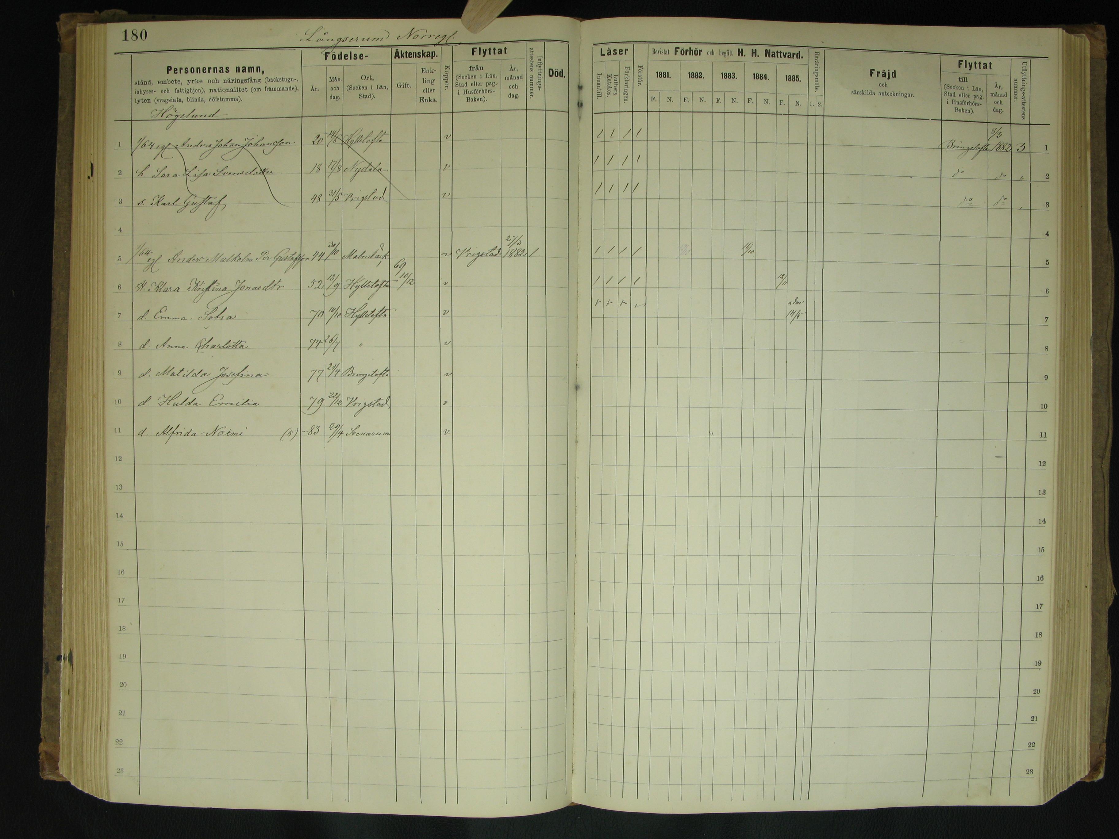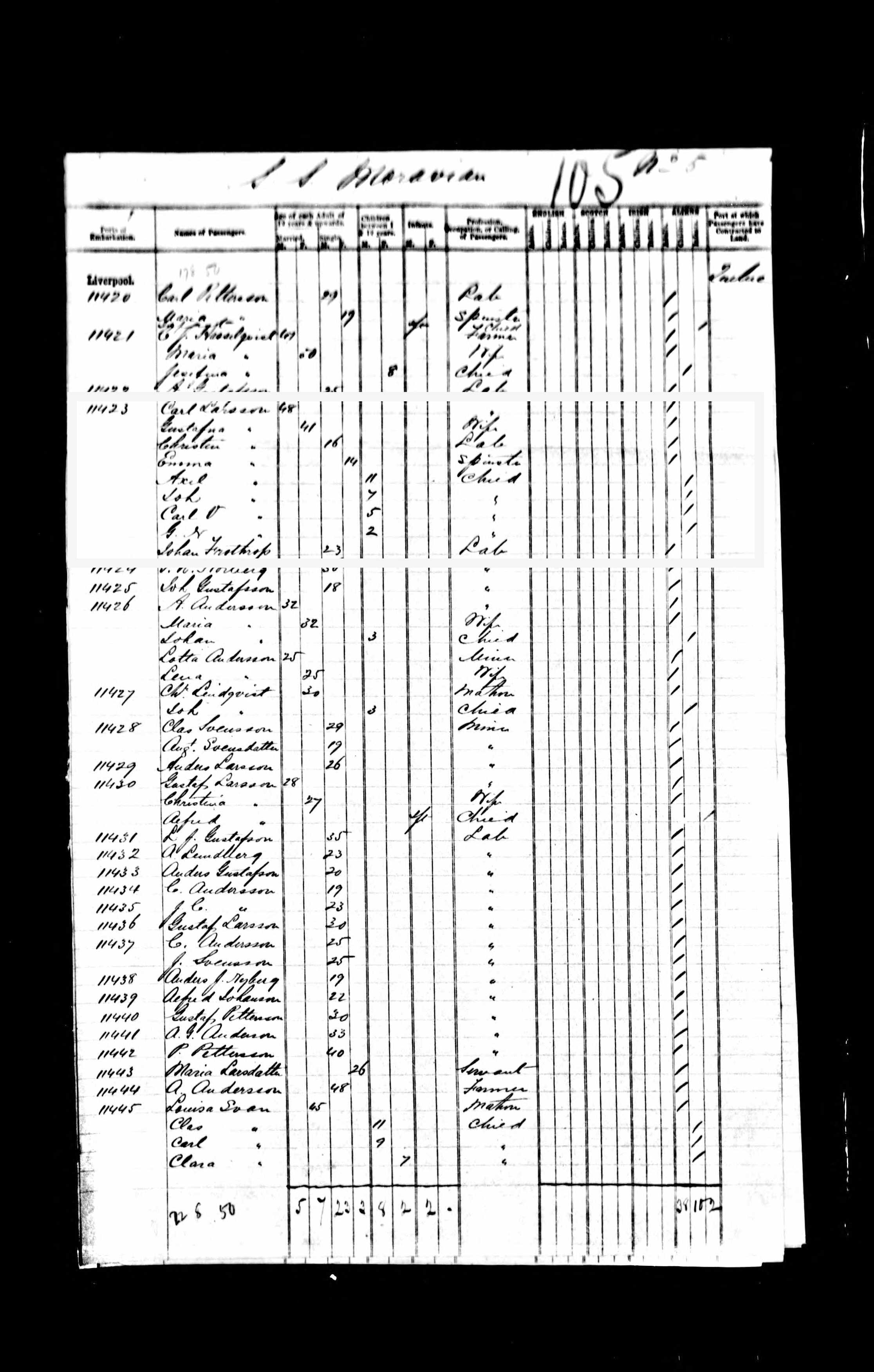 The Carl Larsson family is entry 11423. Here are the entries in the vicinity of his: