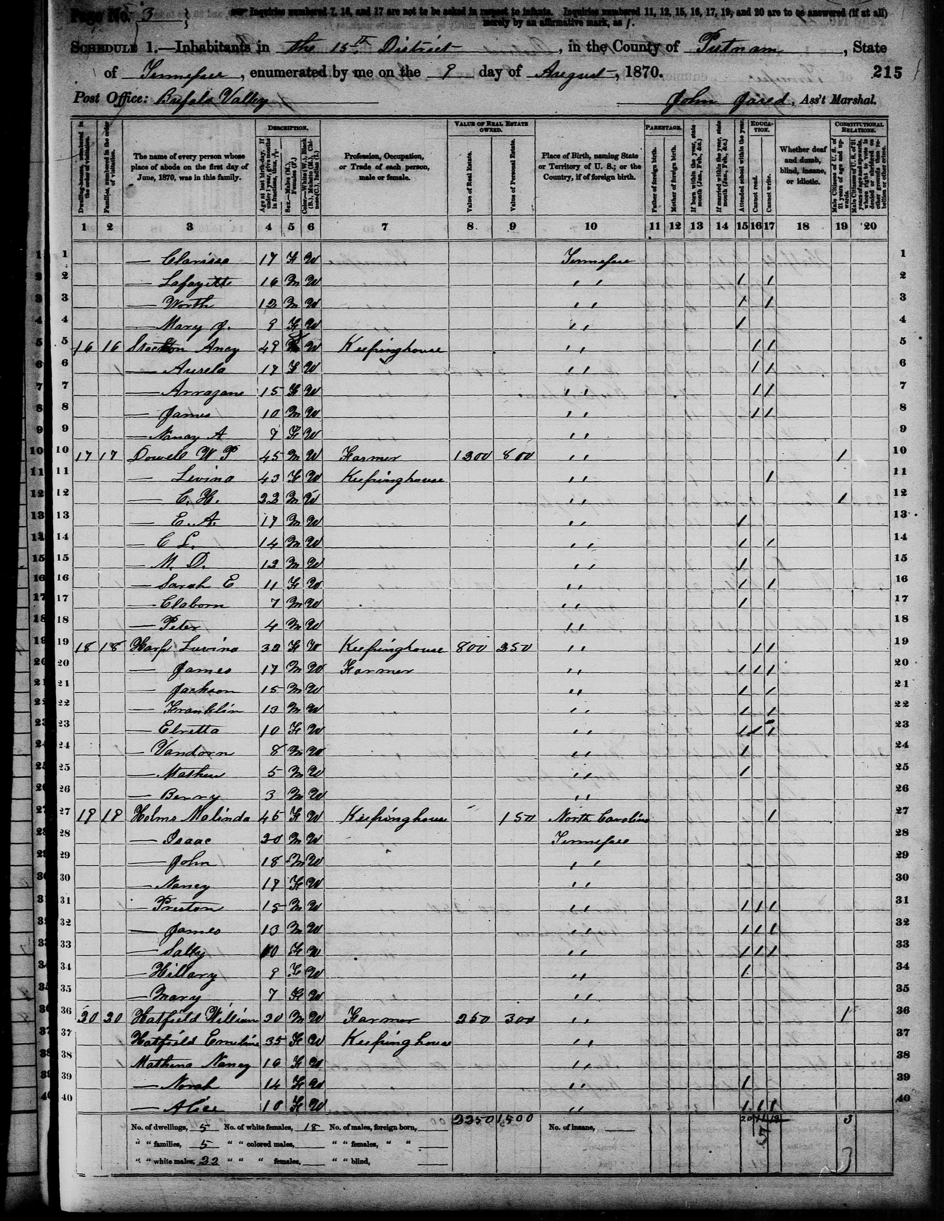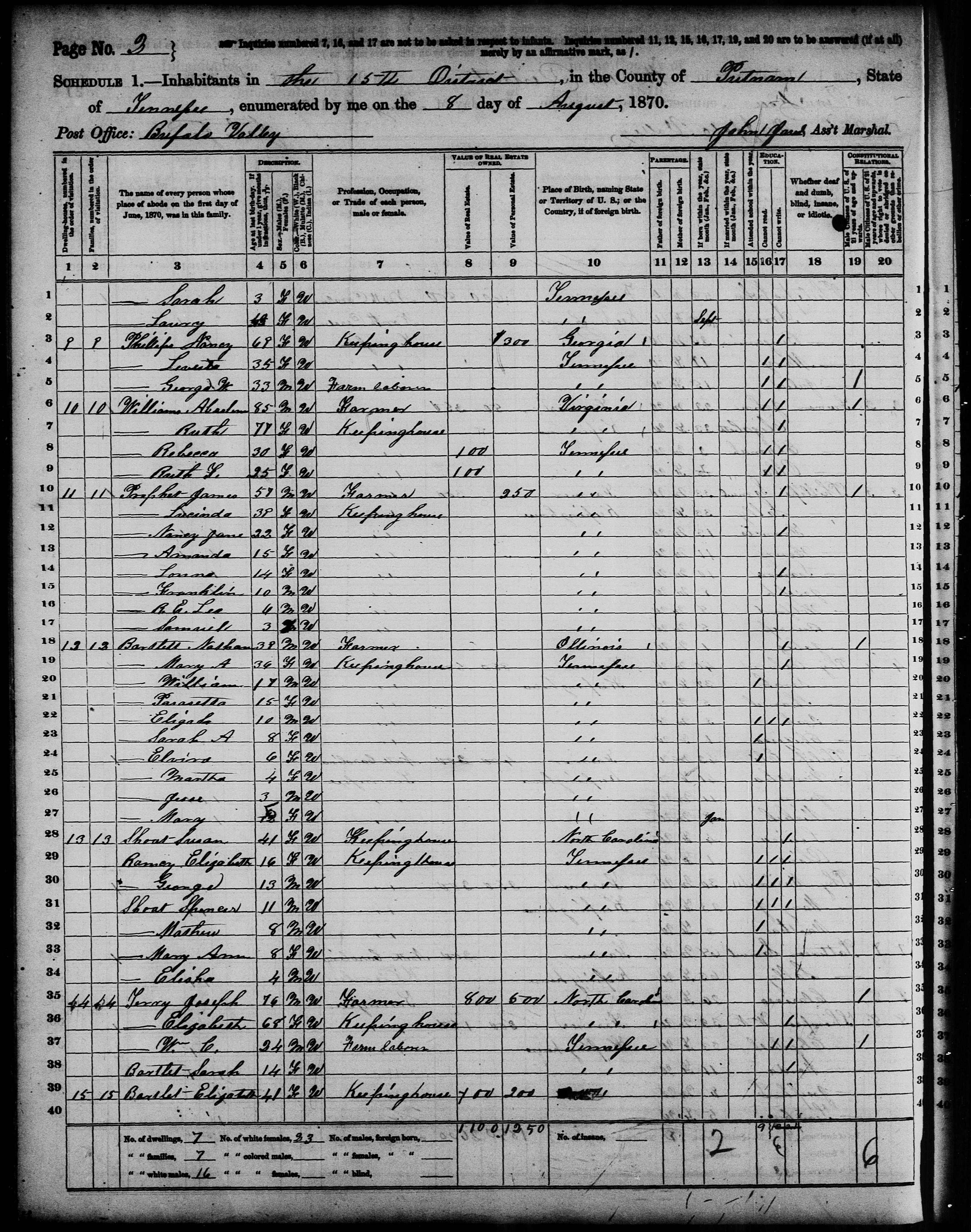 Files (2): 1870 TN Putnam County Buffalo Valley Dist 15 p2, 1870 TN Putnam County Buffalo Valley Dist 15 p3