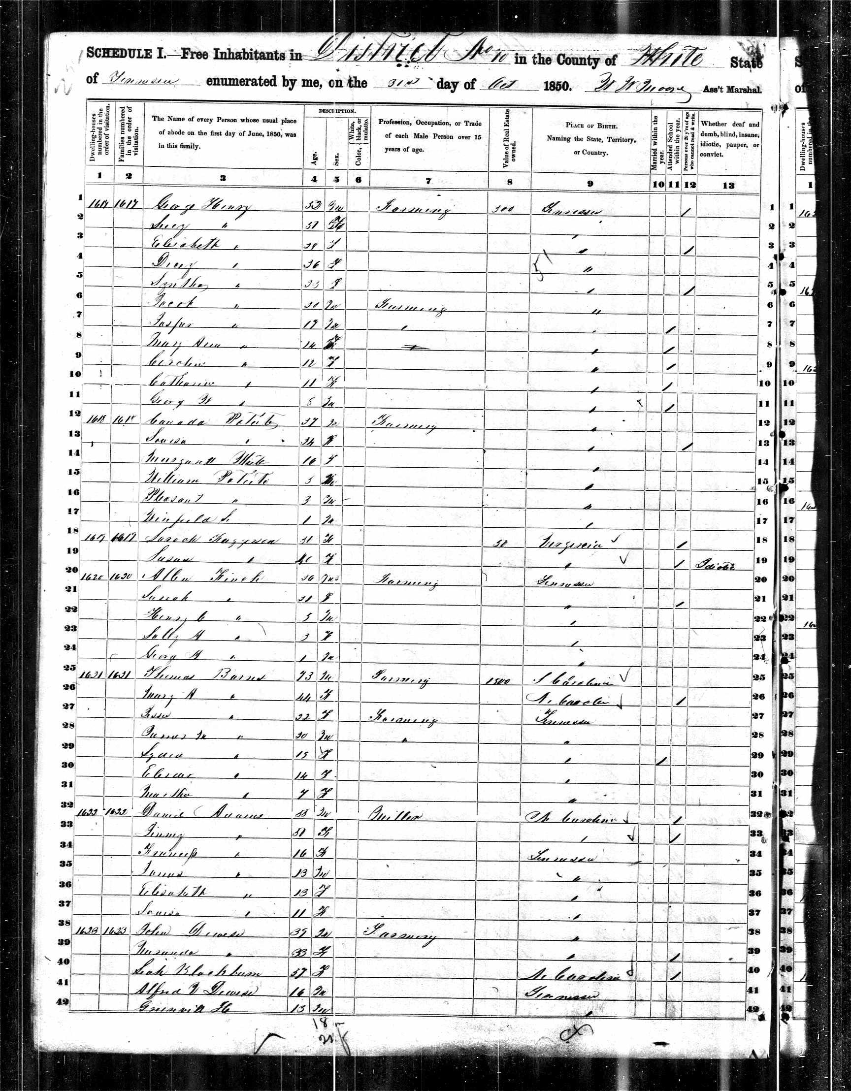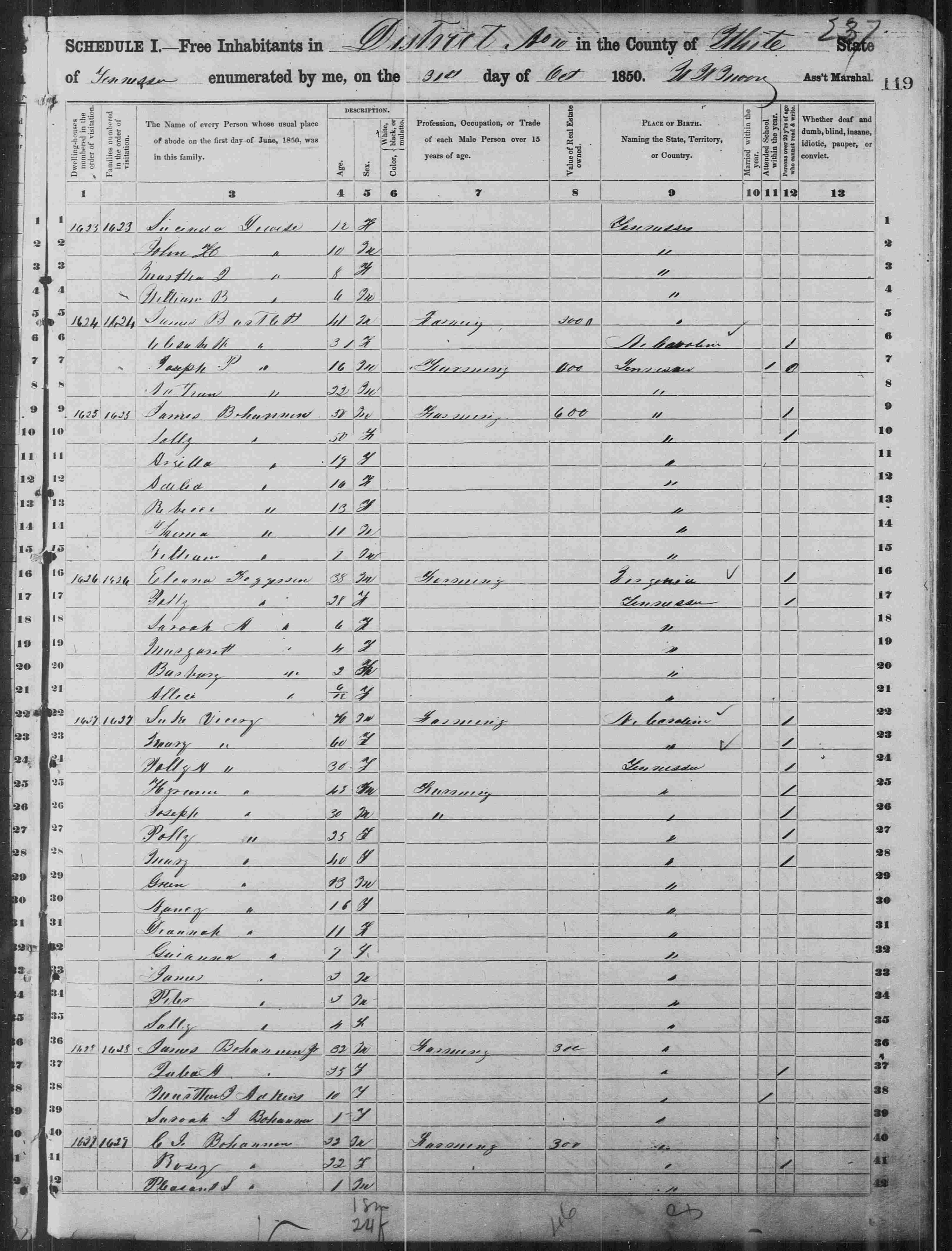 Files (2): 1850 TN White County Dist 10 p118, 1850 TN White County Dist 10 p119