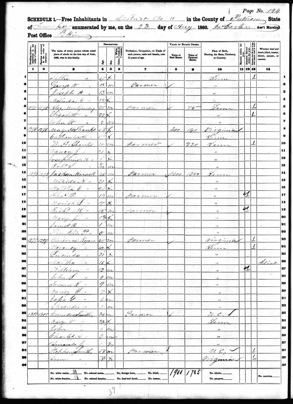 File: 1860 TN Putnam County Dist 11