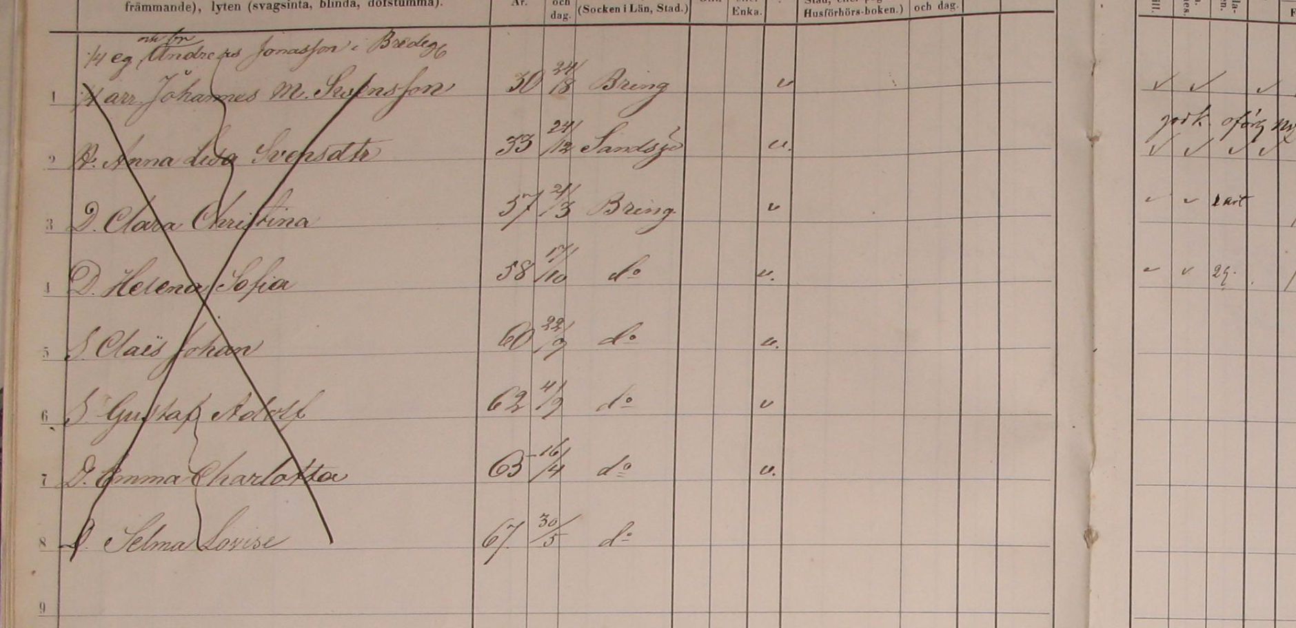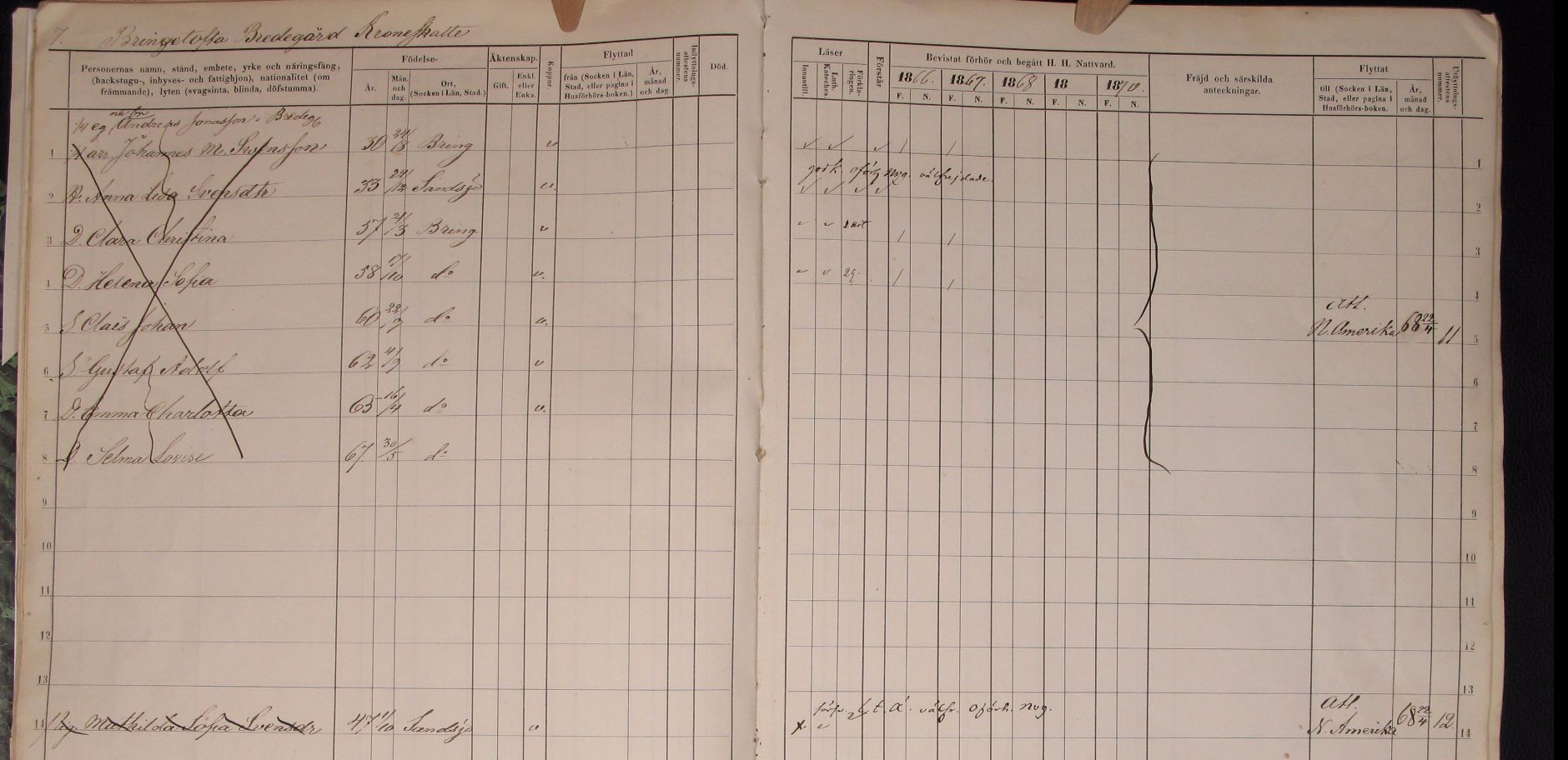 2089. “Sweden Household Examination Books,” 1866-1870, Bringetofta AI 13 1866-1870, Bringetofta Parish, Jönköping County, Småland Province, Sweden, Bringetofta Bredegärd, 7, 15.