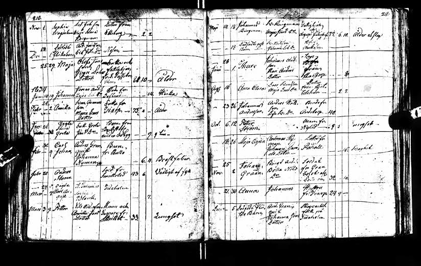 2172. Johannes Andersson, “Swedish Death Records,” August 23, 1834, Ändetorp, Agnetorp C 3 (1814-1836), 106, 211.