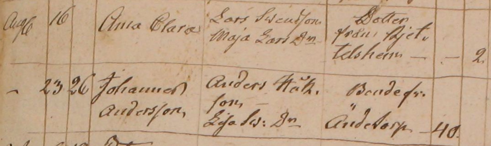 2168. Johanna Gustafva , “Agnetorp 1689-1860 168506F1 25250,” http://www.slaktdata.org/index.php?p=detail&sc...Agnetorp%201689-1860.