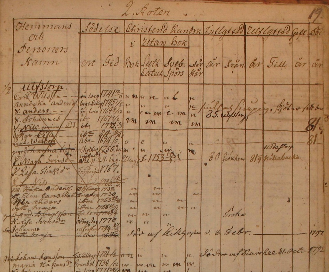 2174. “Sweden Household Examination Books,” 1774-1796, Agnetorp AI 1 1774-1796, Agnetorp Parish, Skaraborgs County, Västergötland, Sweden, Scandinavia, Ulfvestorp, 19, 16.