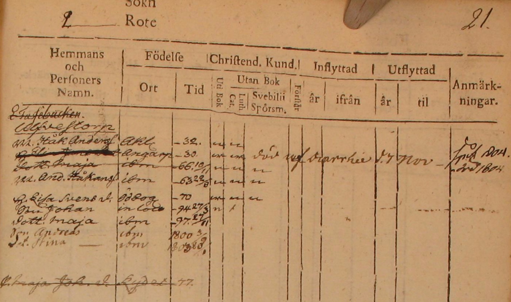 2175. “Sweden Household Examination Books,” 1796-1805, Agnetorp AI 2 1796-1805, Agnetorp Parish, Skaraborgs County, Västergötland, Sweden, Scandinavia, Ulfvestorp, 21, 24.