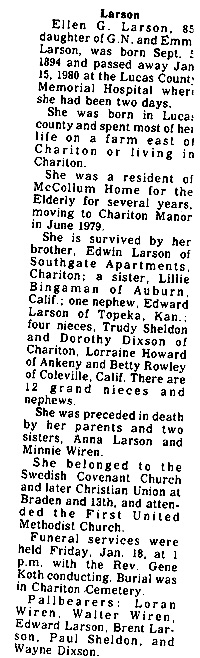 2155. “Deaths & funerals,” Amanda Noren, The Salina Journal, Salina, KS, May 13, 1987, 11.
