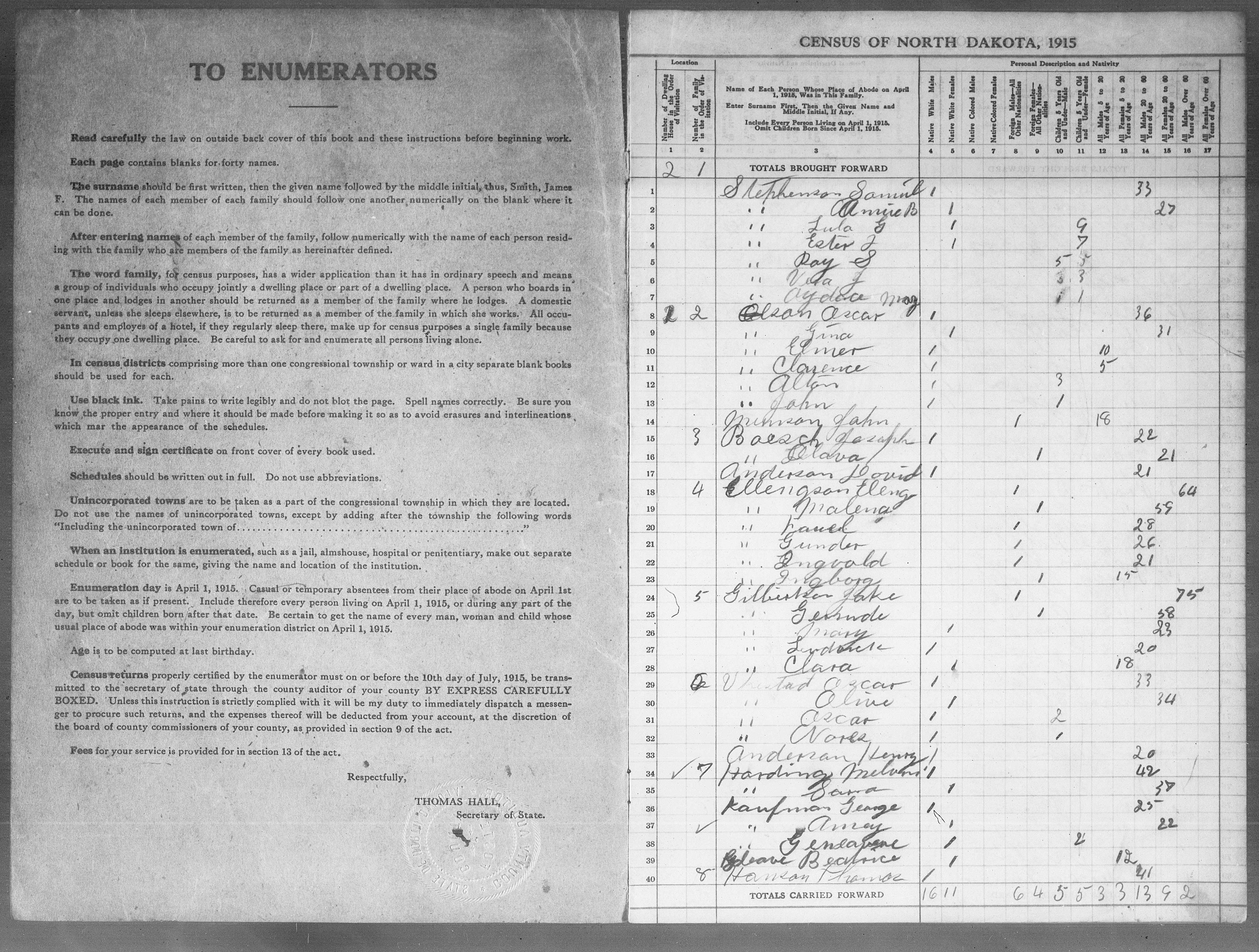 3145. “North Dakota Census,” 1915, ND, Foster, 91, State Historical Society of North Dakota.