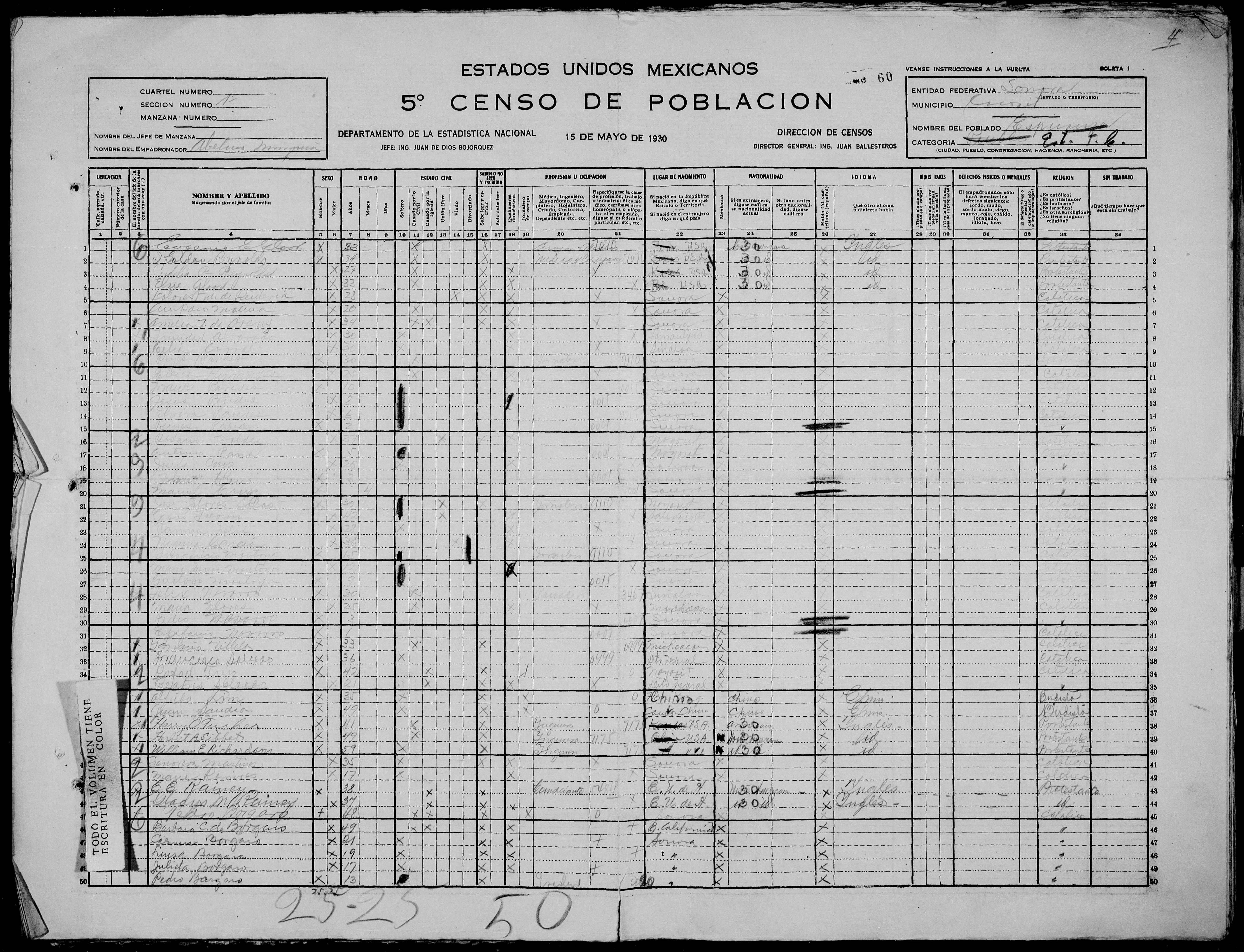 3153. “México, censo nacional, 1930,” Departmento de la Estadistica Nacional, 1930, Sonora, Cócorit, Esperanza, May 15, 1930, 60, 1520330.
