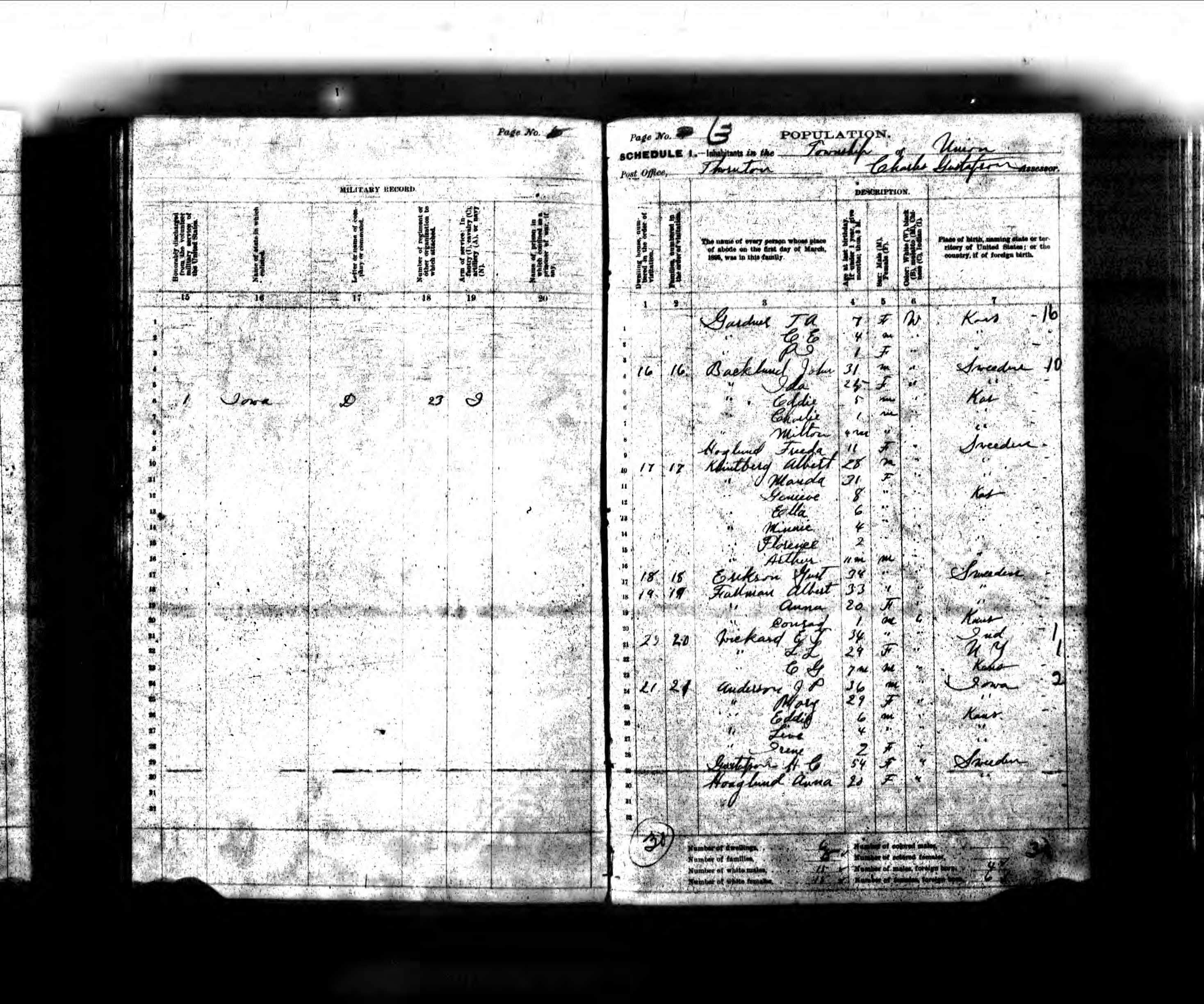 3228. “Kansas State Census,” 1895, KS, Rawlins, Union, Thornton, 3, 4, Kansas Department of Health and Environment Office of Vital Statistics, March 1, 1895, Charles Gustafson.