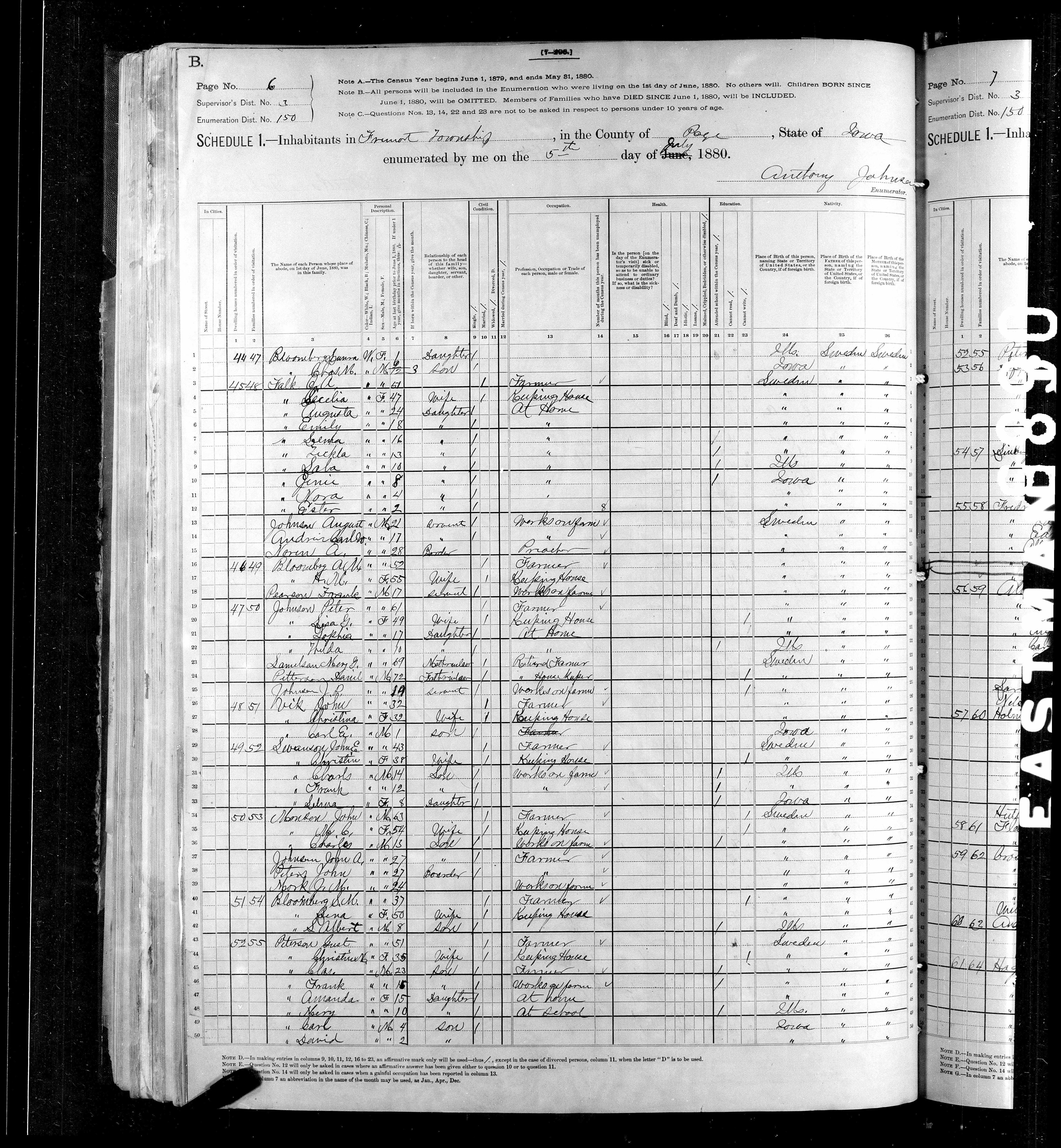 3675. “United States Census,” 1880, IA, Page, Fremont, 6B, 3, 150, T9, 1254358, 336, 680, 10th Decennial Census Office, Bureau of the Census, US Dept. of Commerce, United States of America, July 5, 1880, Anthony Johnson.