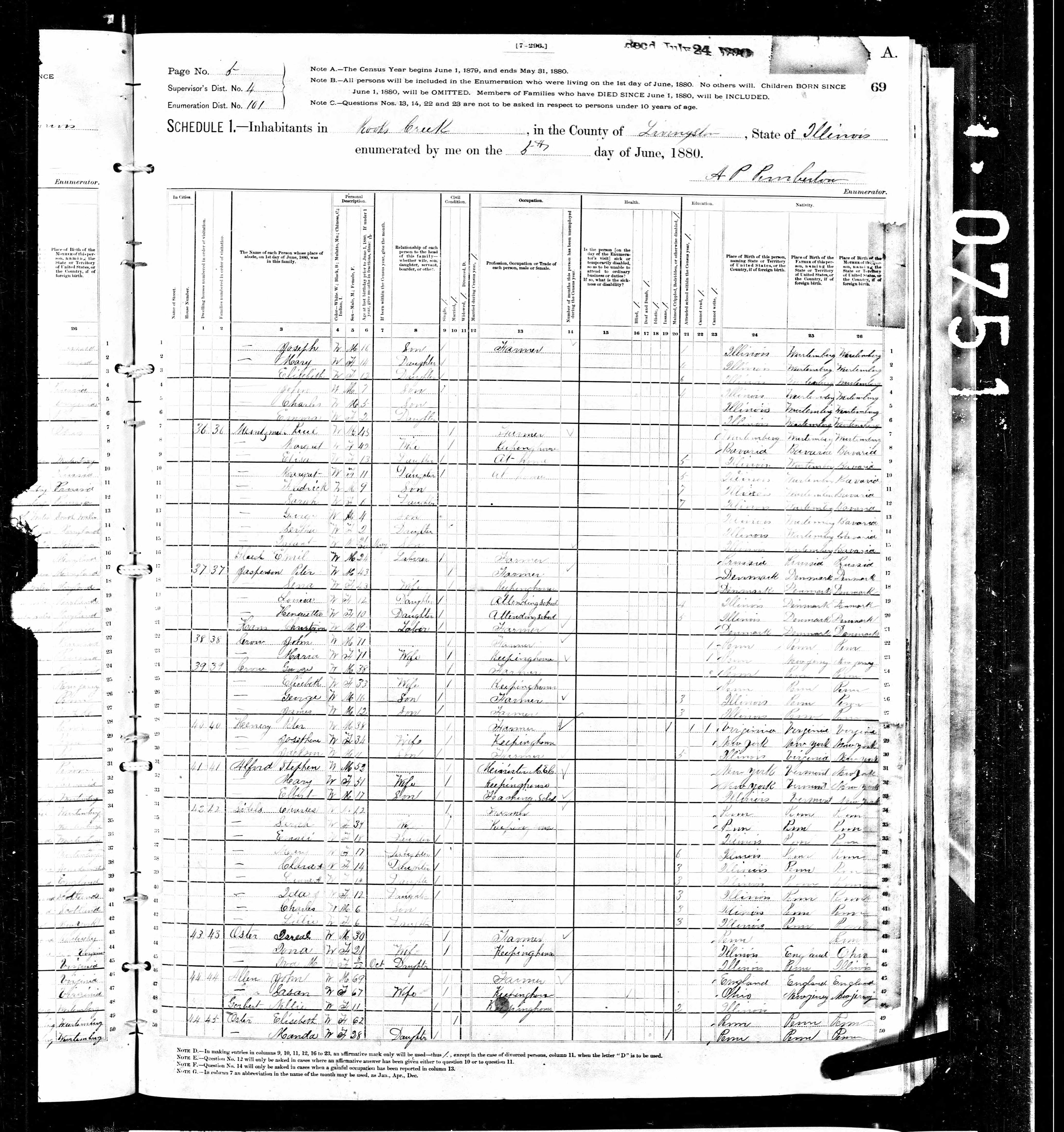3699. “United States Census,” 1880, IL, Livingston, Rooks Creek, 5A, 4, 101, T9, 225, 773, Bureau of the Census, US Dept. of Commerce, United States of America, June 5, 1880, A P Periburton.