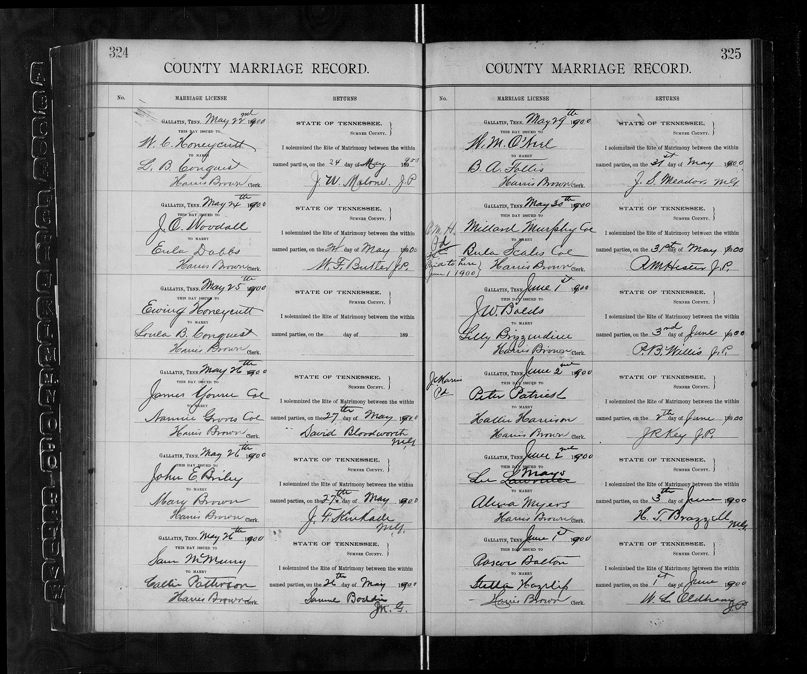 4157. John E Briley and Mary Brown, “Tennessee, County Marriages, 1790-1950,” May 27, 1900, Sumner County, TN, https://familysearch.org/ark:/61903/1:1:QKH3-Z775.