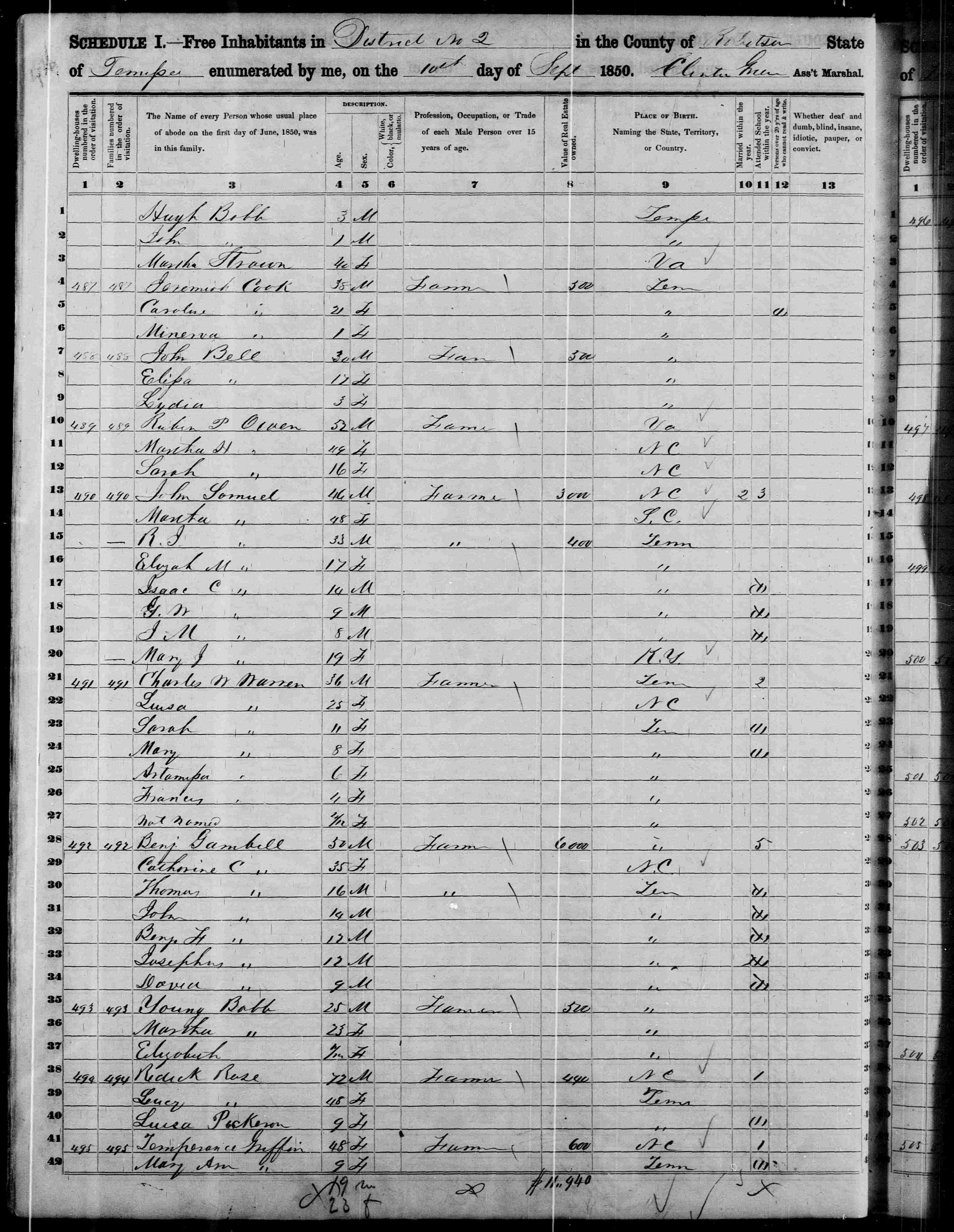 File: 1850 TN Robertson County Dist 02 p38