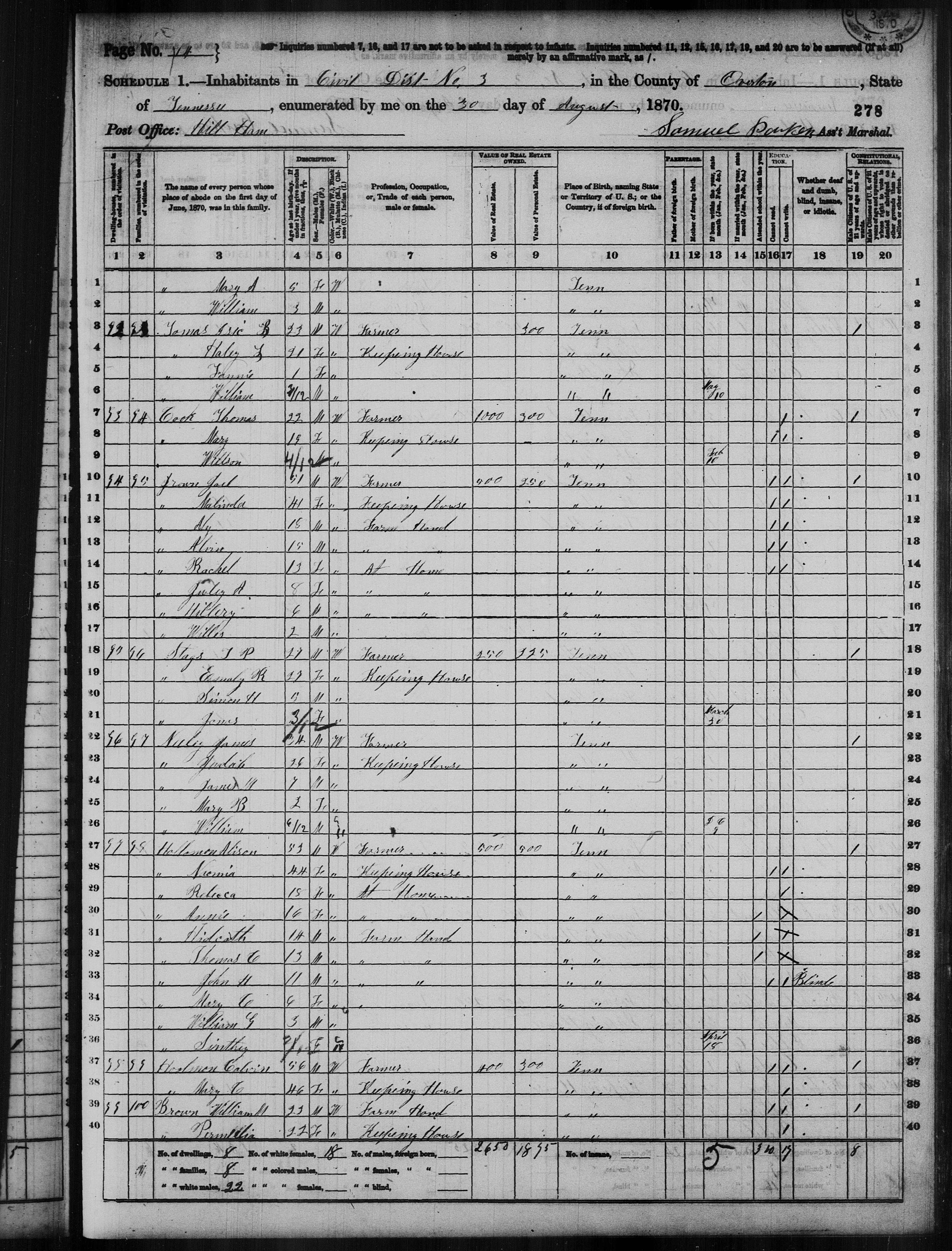 File: 1870 TN Overton County Hill Ham District 3 p14