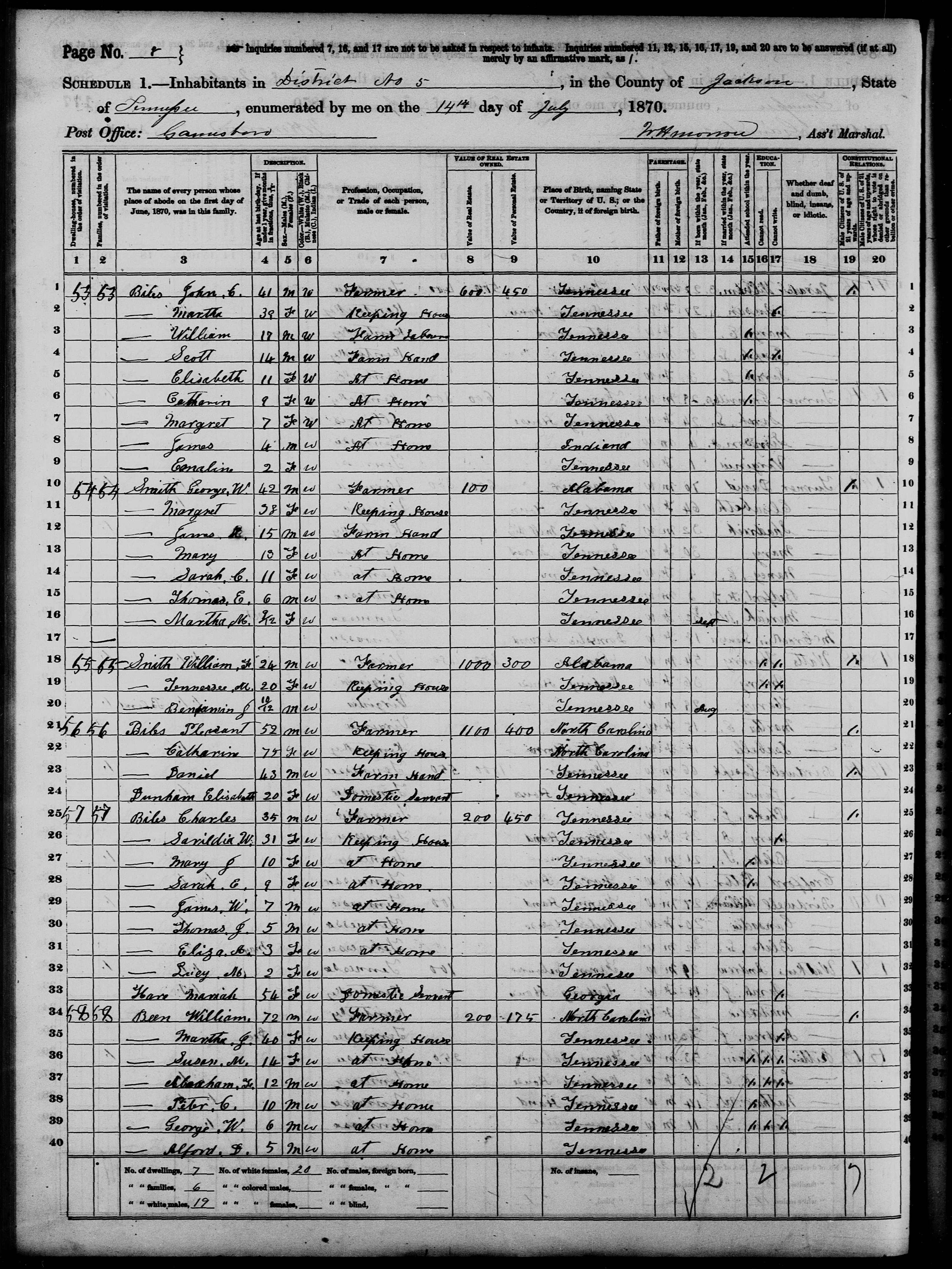 5672. “United States Census,” 1870, TN, Jackson, District 05, Gainesboro, 8, M593, 553038, 354, Bureau of the Census, US Dept. of Commerce, United States of America, July 14, 1870, W Harrison.