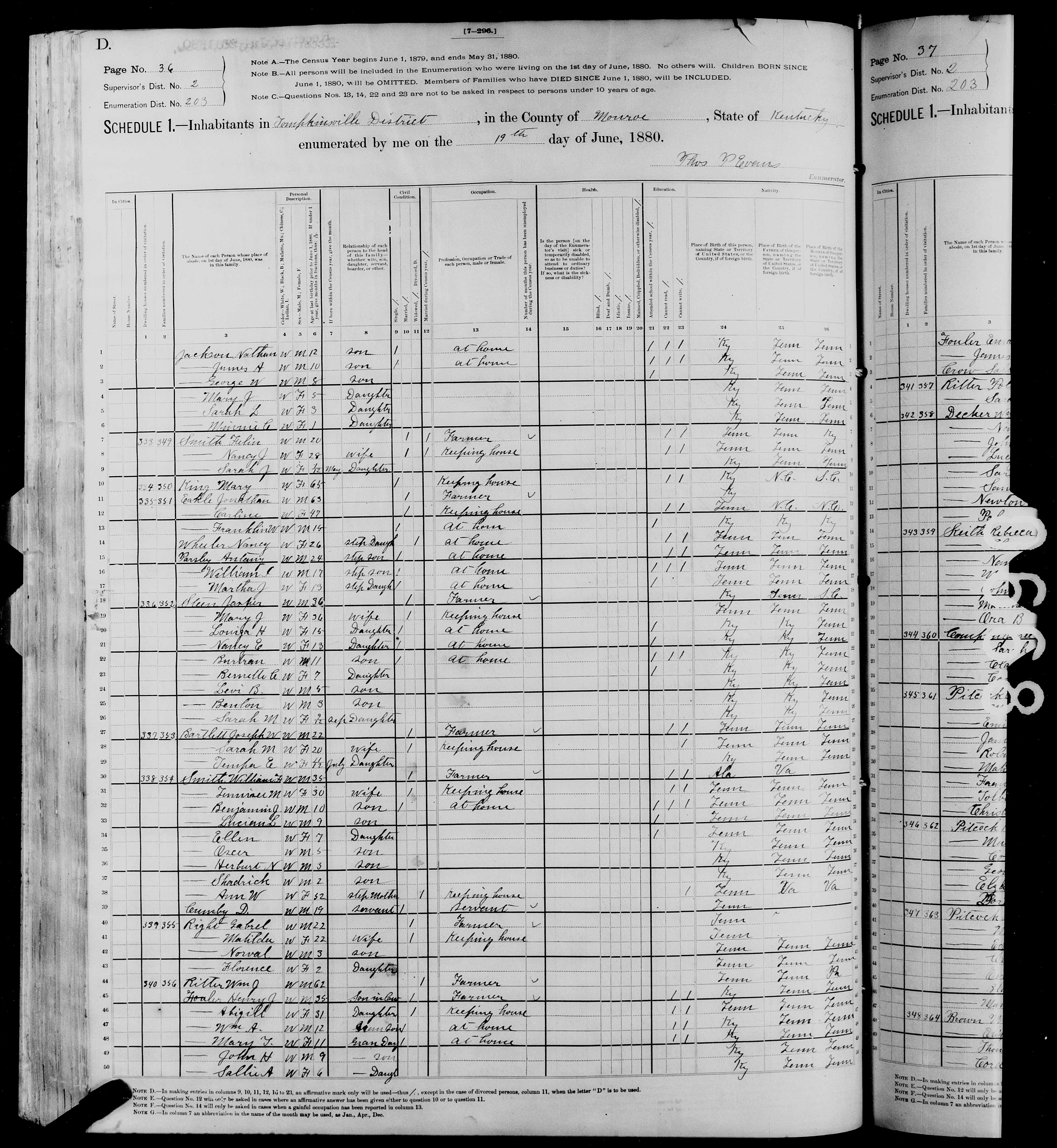 5673. “United States Census,” 1880, KY, Monroe, Tompkinsville, 36D, 2, 203, T9, 1254434, 334, 675, 10th Decennial Census Office, Bureau of the Census, US Dept. of Commerce, United States of America, June 19, 1880, Thos P Evans.