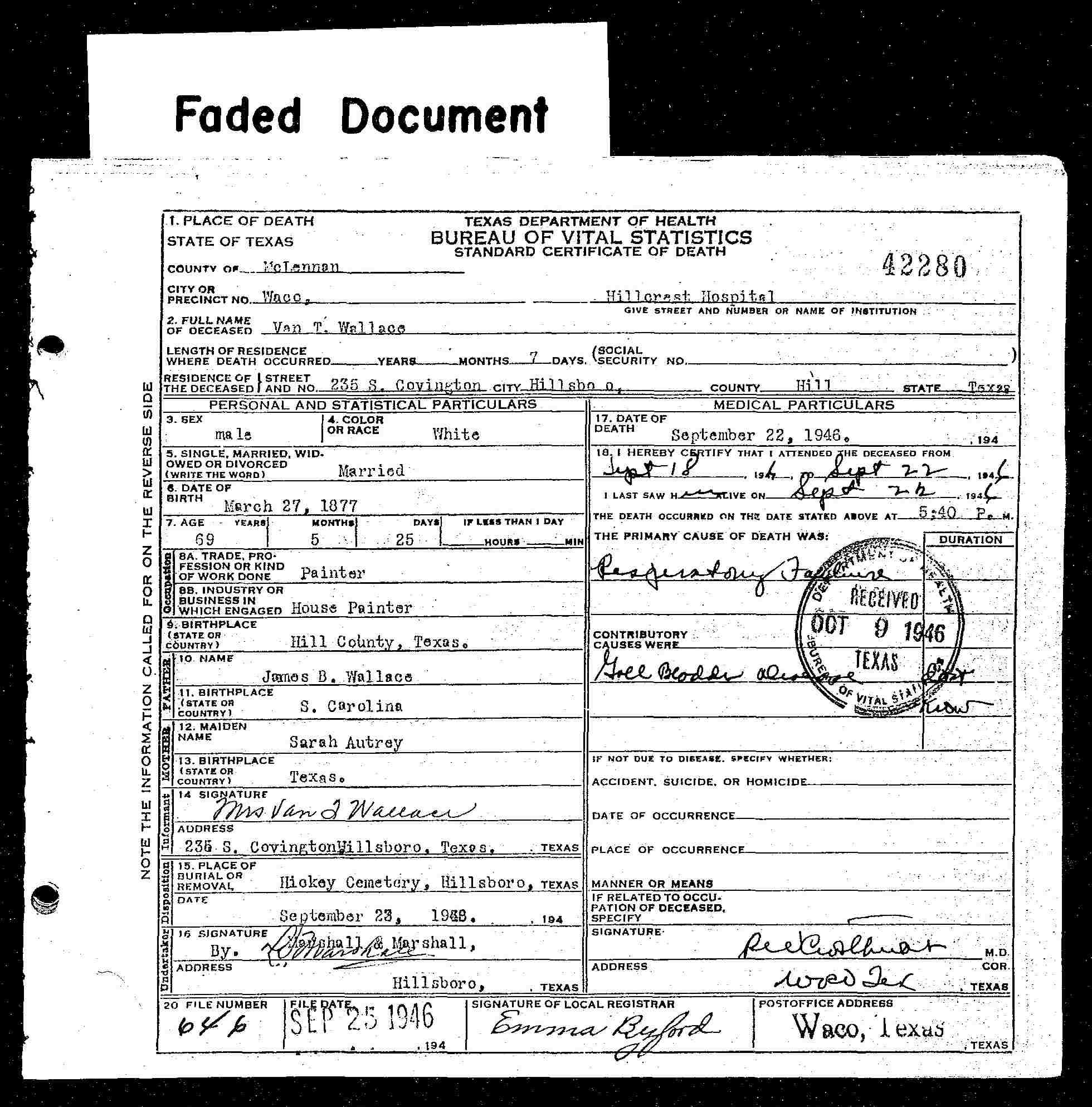 5726. “Van Thomas Wallace,” Find-A-Grave, https://www.findagrave.com/memorial/39933147, 39933147.