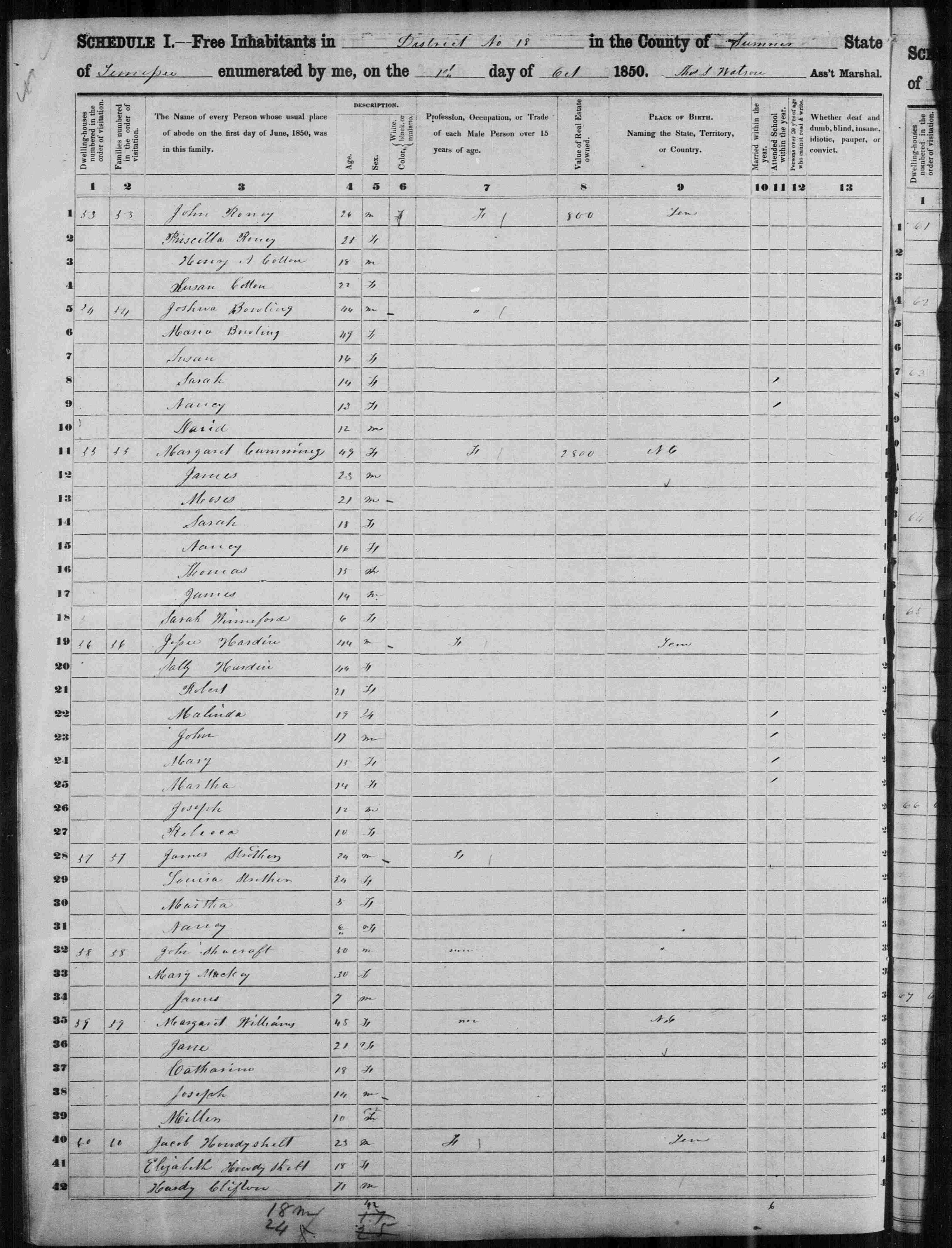 5794. “United States Census,” 1850, TN, Jackson, District 10, M432, 885, 265-266, 219, Bureau of the Census, US Dept. of Commerce, United States of America, October 2, 1850, J R Kerr, Indicates about 1785.
