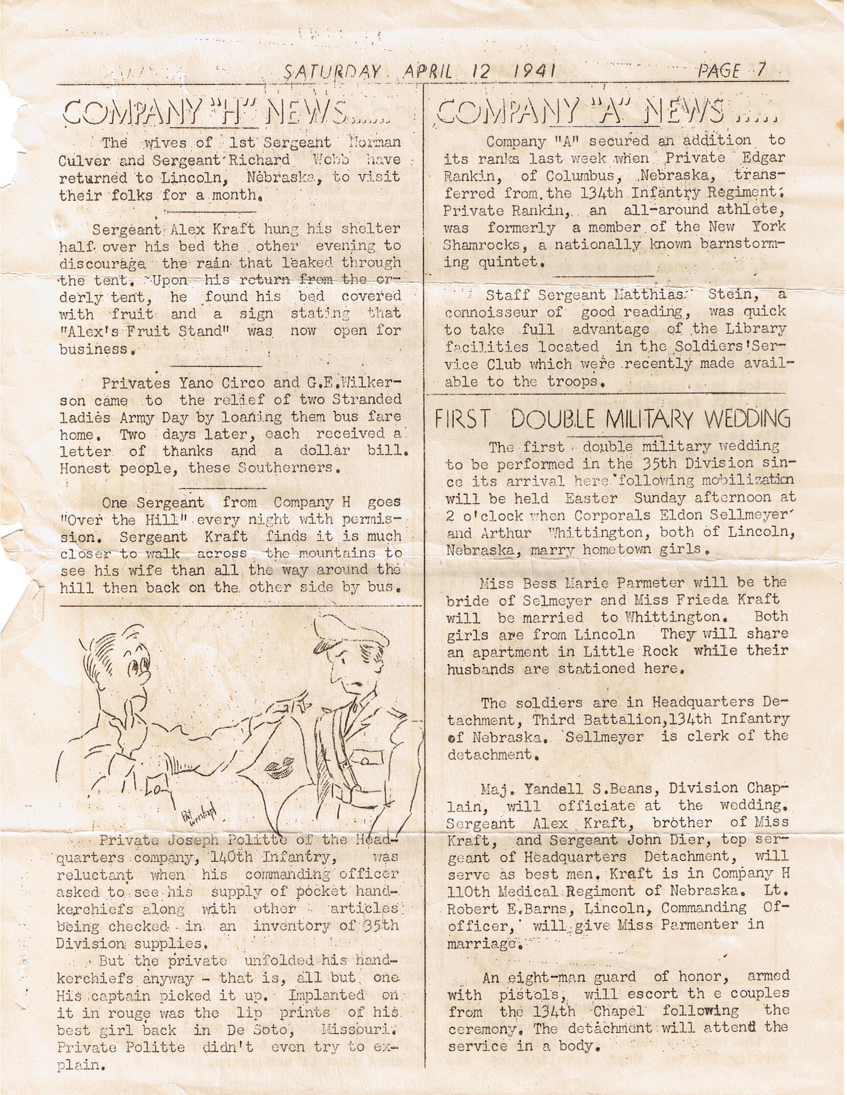 5909. “First Double Military Wedding,” Arthur Whittington and Frieda Kraft, Company “A” News, Ft. Robinson, Little Rock, Pulaski County, AR, April 12, 1941, 7.