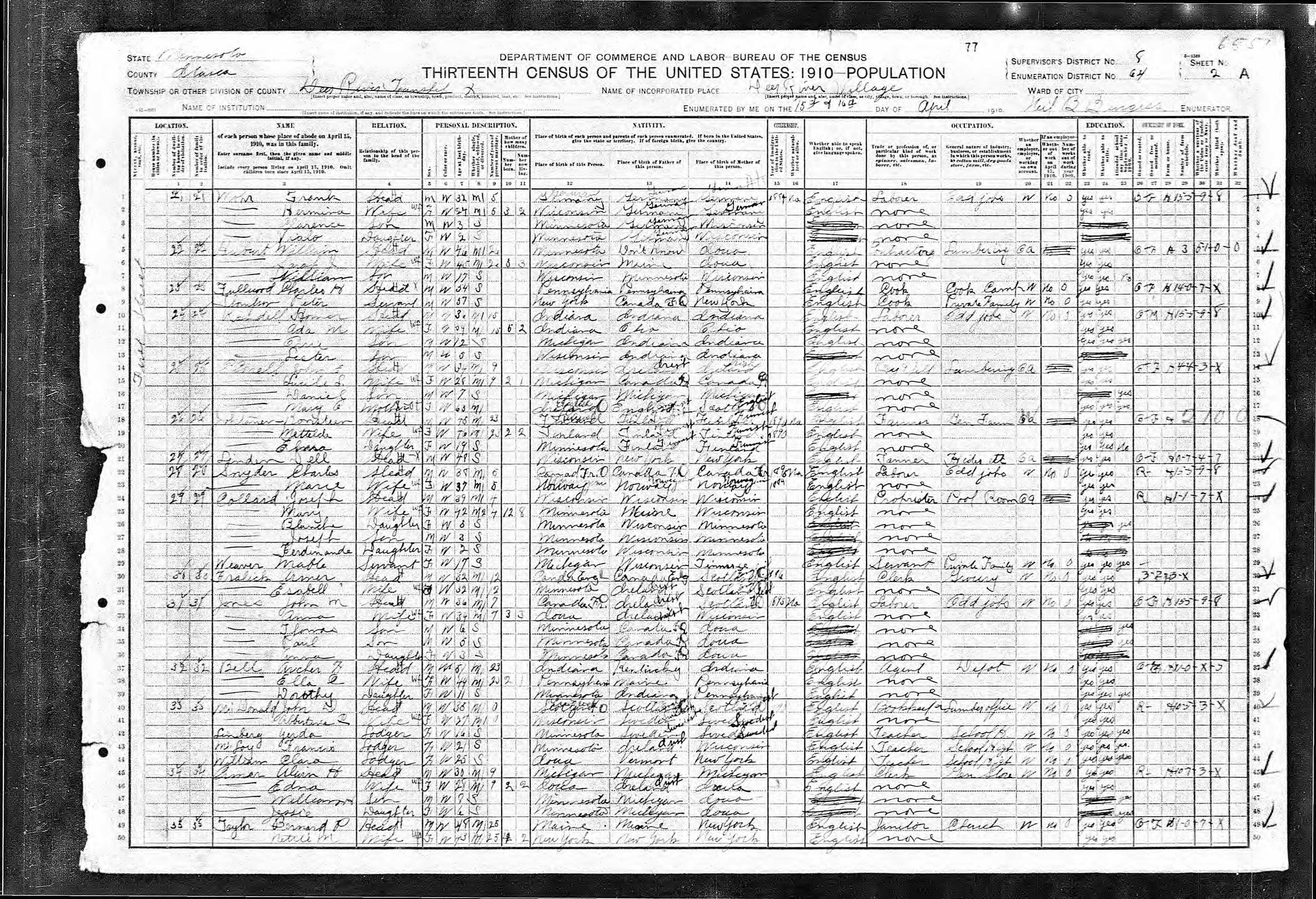 6161. “United States Census,” 1910, MN, Itasca, Deer River, 2A, 8, 64, T624, 707, Bureau of the Census, US Dept. of Commerce, United States of America, April 29, 1910, J W Mermon.