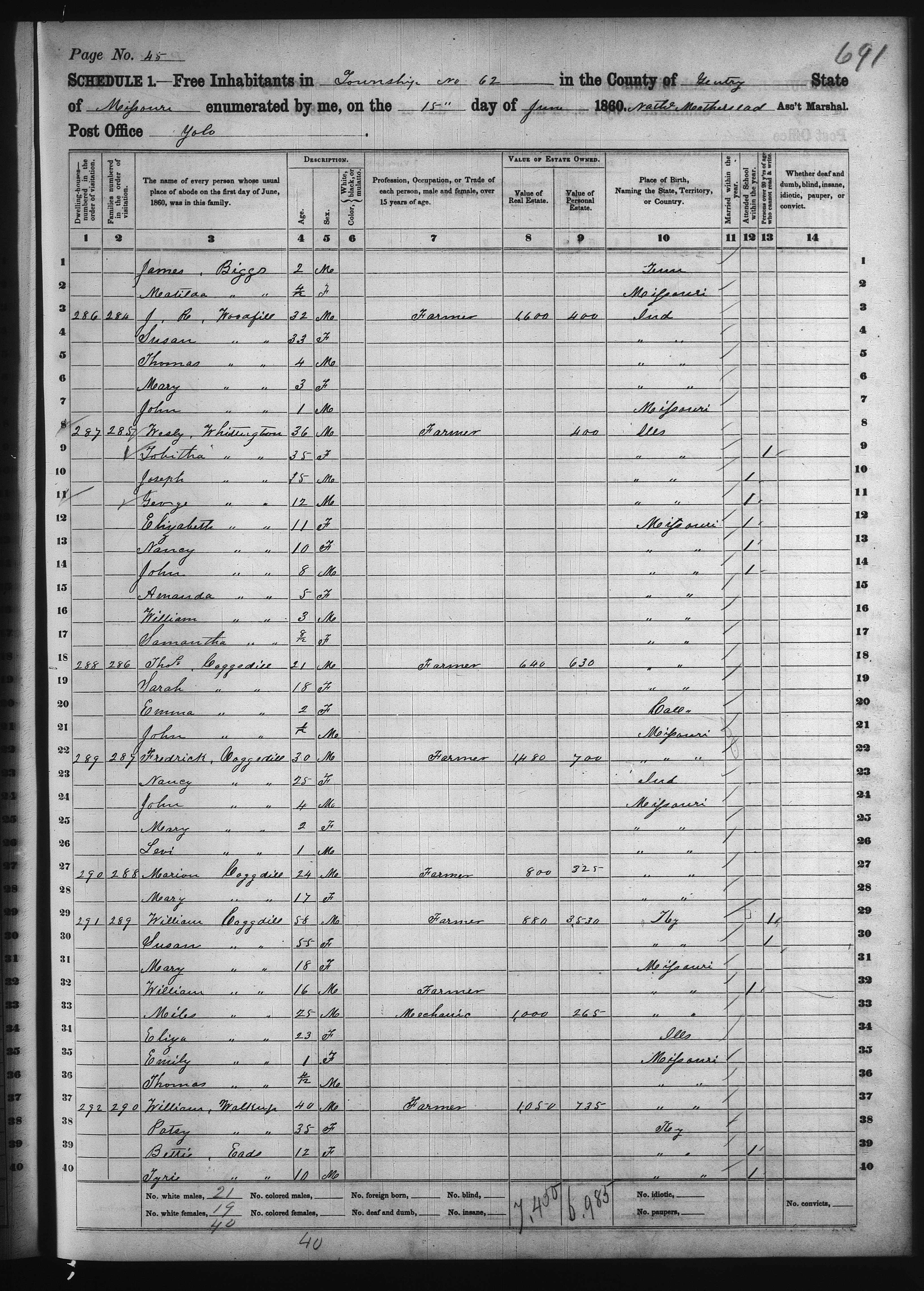 6171. “United States Census,” 1860, MO, Gentry, Township No 62, 45, M653, 803620, Bureau of the Census, US Dept. of Commerce, United States of America, June 15, 1860, Nath Meathersead.