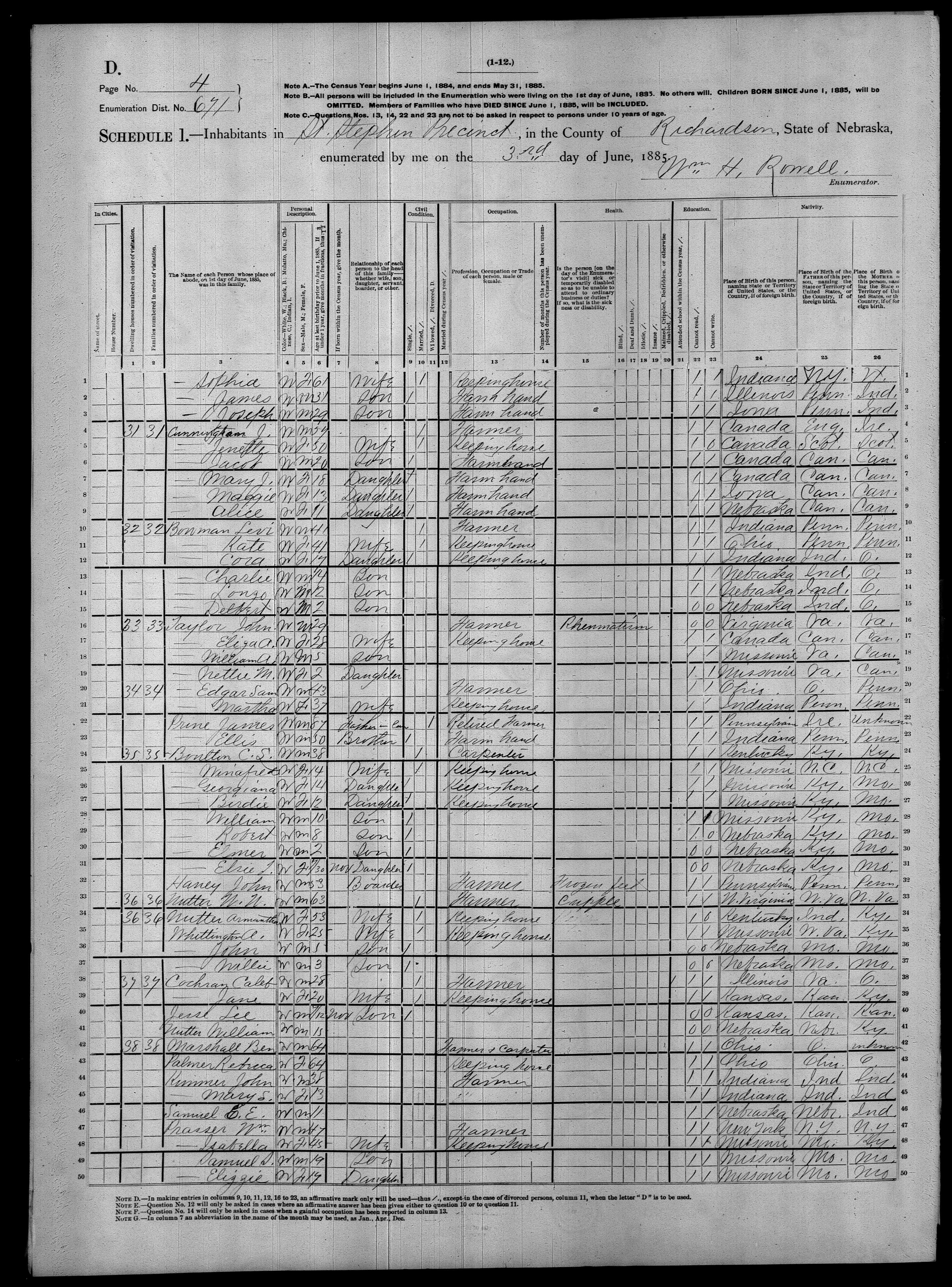 6179. “Nebraska, State Census,” 1885, NE, Richardson, Saint Stephen, June 3, 1885, Wm. H. Rowell, 4D, 671, M352.