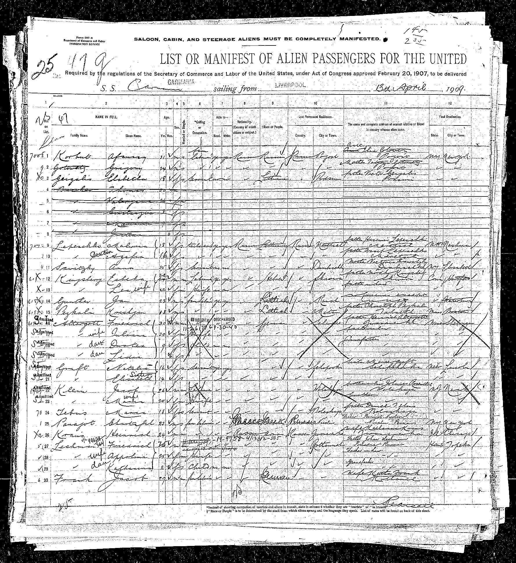 6363. “Ellis Island - FREE Port of New York Passenger Records Search,” April 21, 1909, Ellis Island, NY, http://www.libertyellisfoundation.org/passenger-de...czo4OiJtYW5pZmVzdCI7.