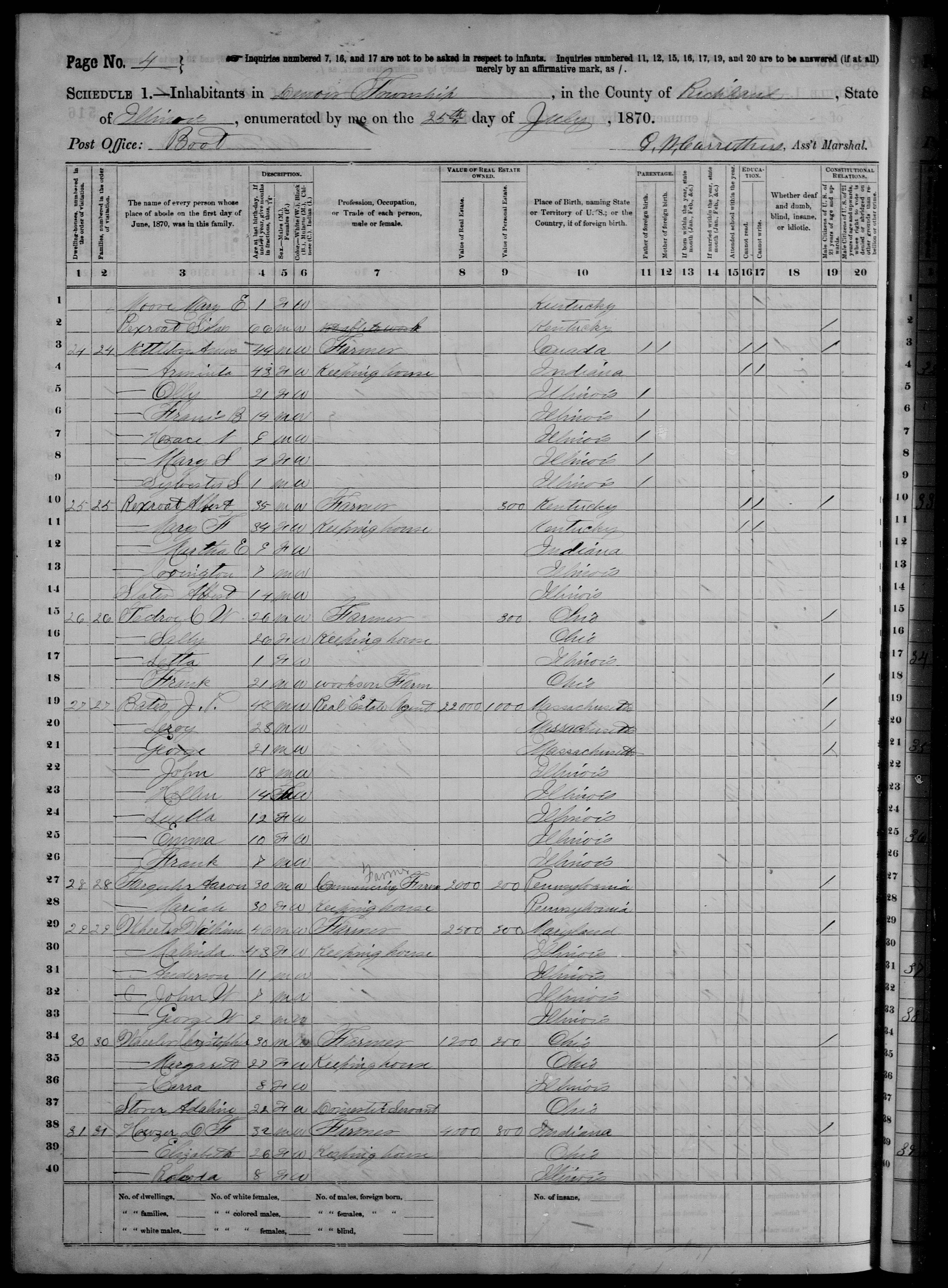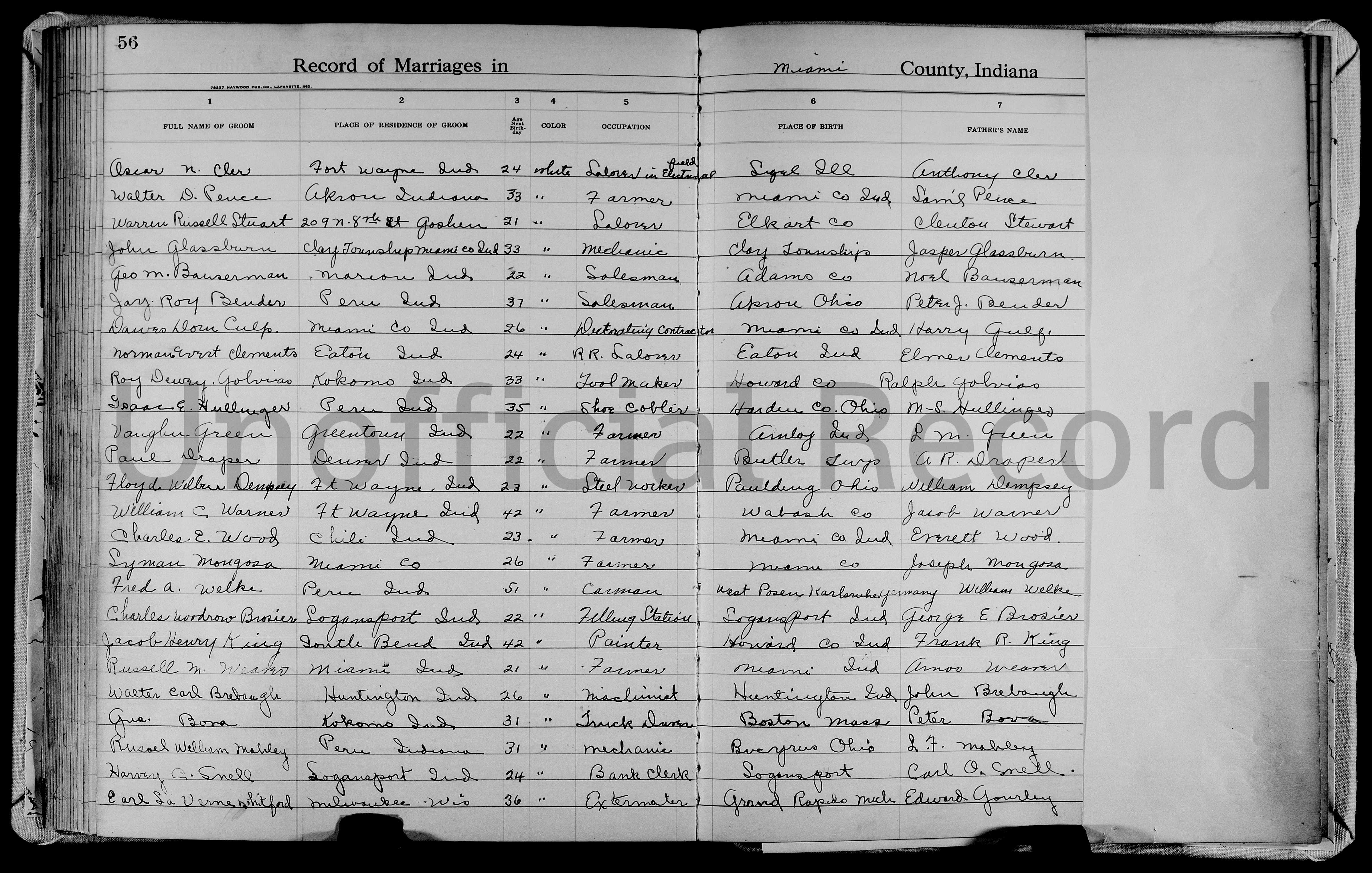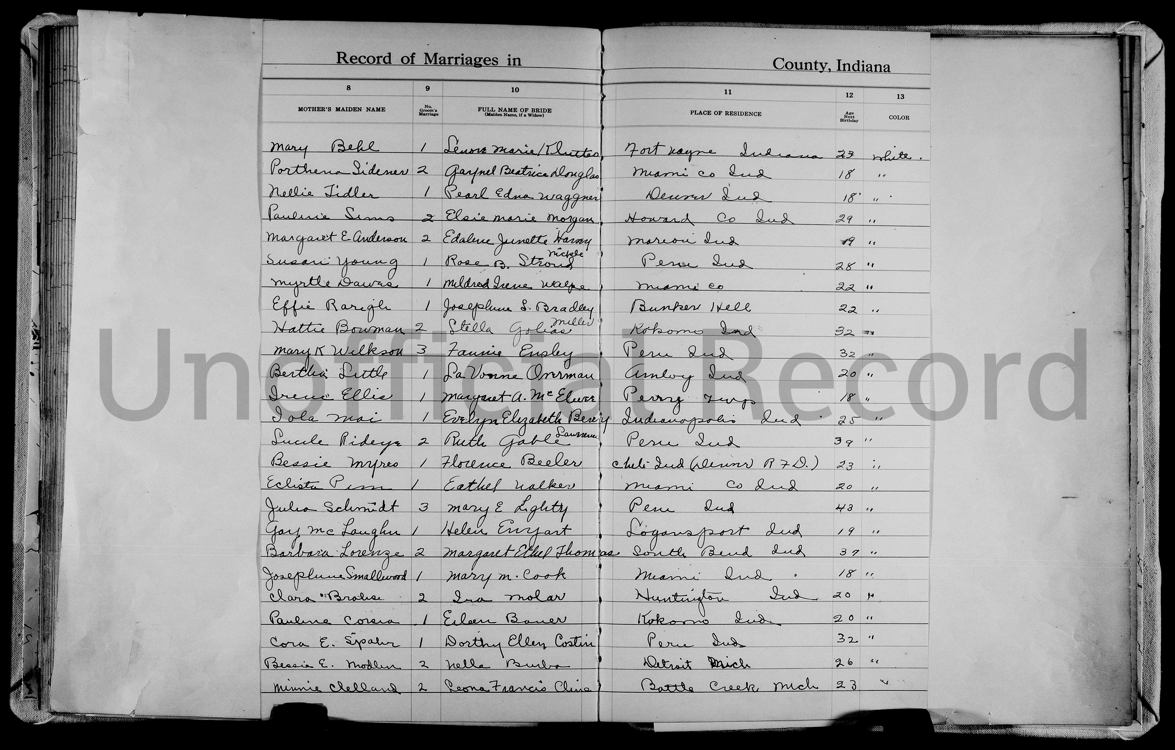 Column 02: Place of Residence of Groom = Peru, Ind