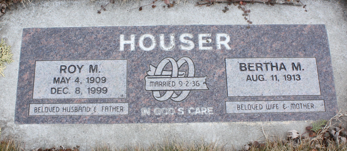 6624. Roy M Houser and Bertha M Hess, “Lancaster Marriage Records,” September 2, 1936, Lancaster County, NE, http://www.llcgs.net/getmarriage.php?id=153720.