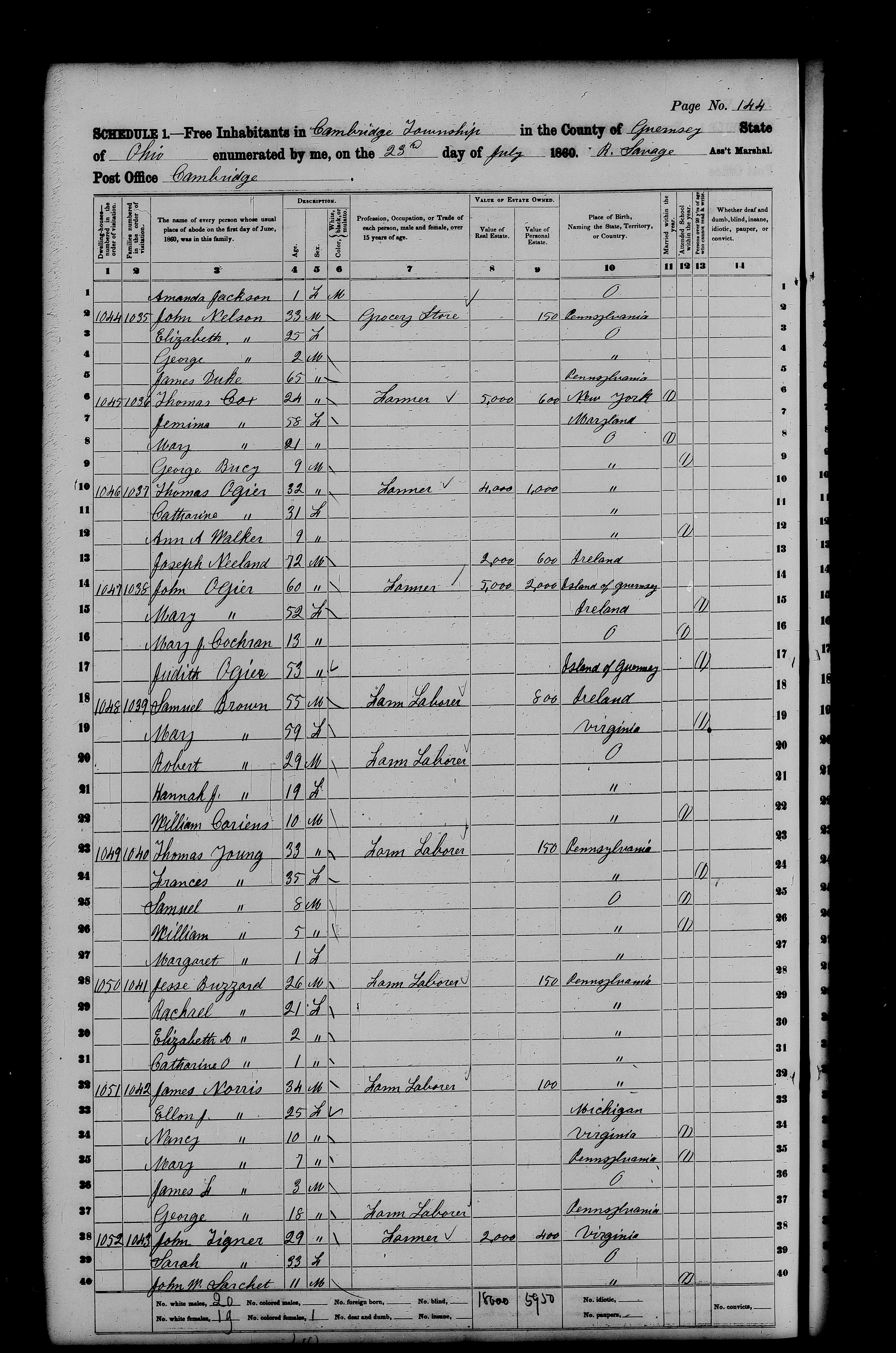 File: 1860 OH Guernsey County Cambridge p144