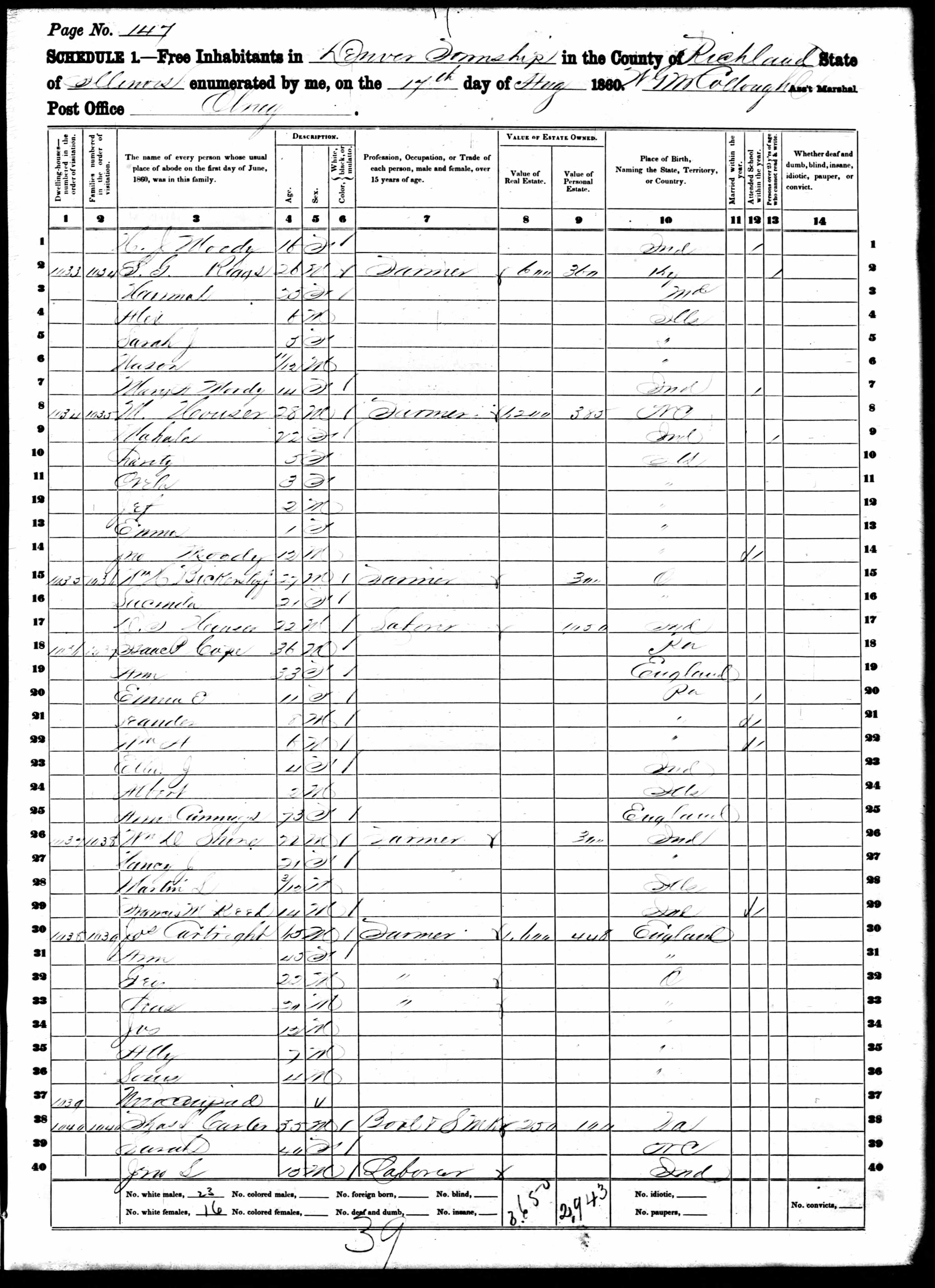 File: 1860 IL Richland County Denver p147