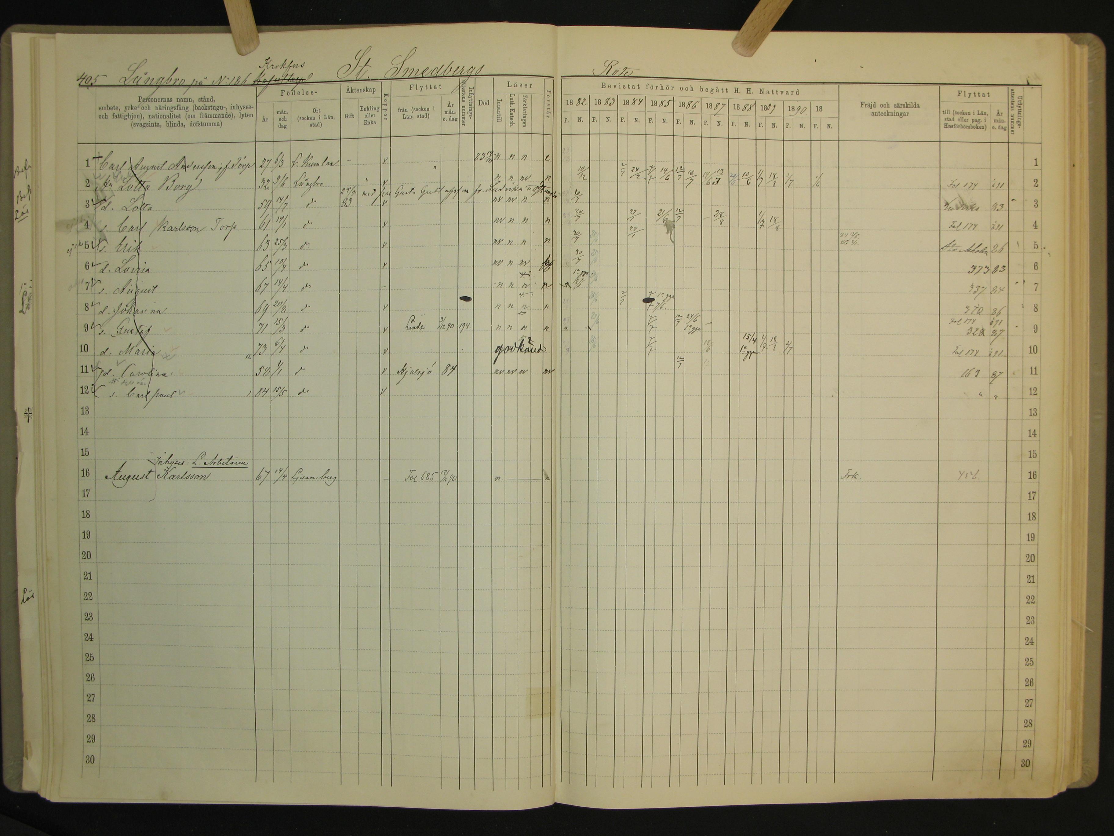6853. “Sweden Household Examination Books,” Ljusnarsberg AI 21b, 1882 - 1891, Långebro På N:o 186 Krokfors St Smedbergs Rote, Ljusnarsberg, Örebro, Västmanland, Sweden, 405, Lists name as Lotta Borg.