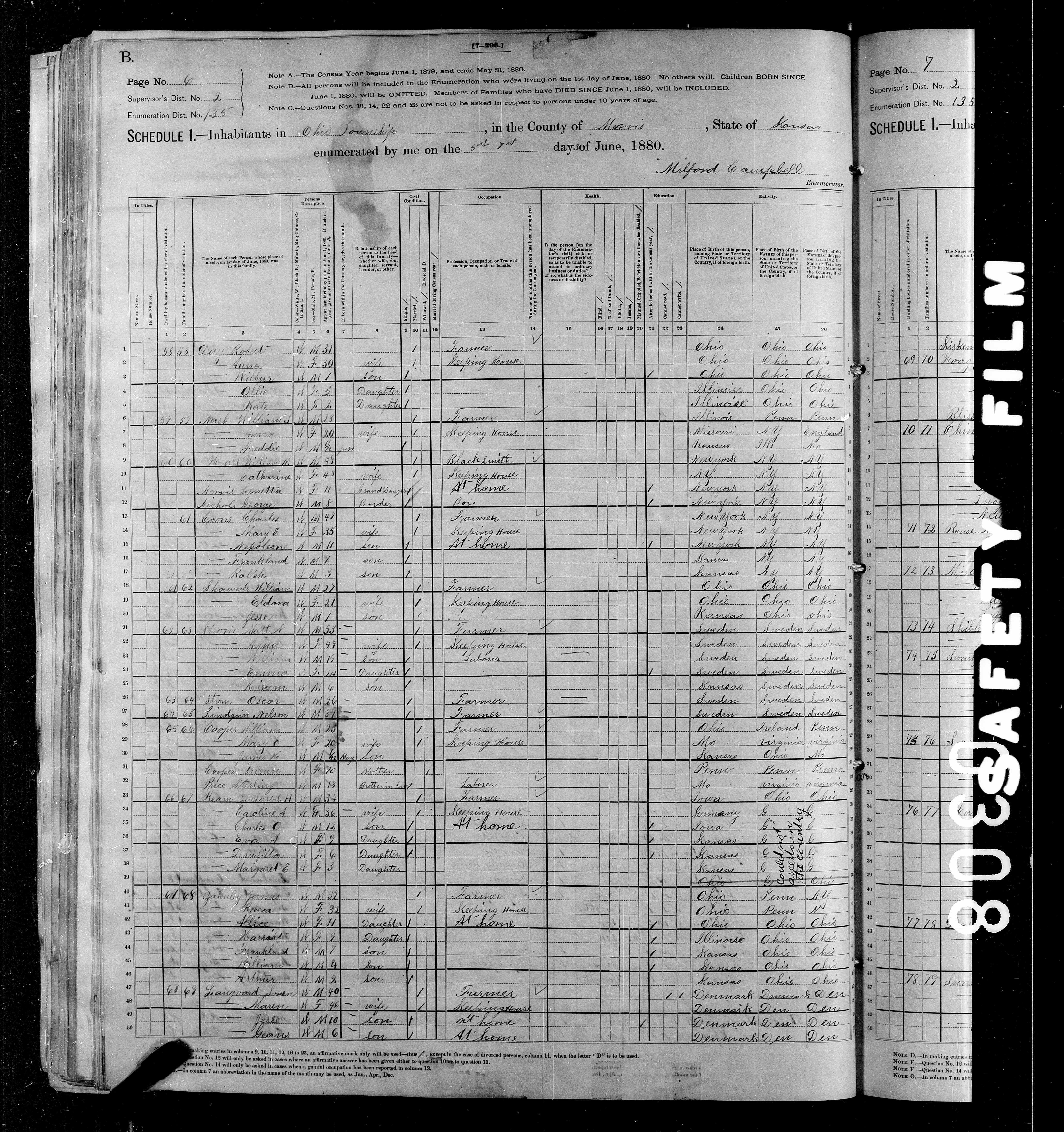7014. “United States Census,” 1880, KS, Morris, Ohio, 6B, 2, 135, T9, 390, 410, 323, Bureau of the Census, US Dept. of Commerce, United States of America, June 7, Milford Campbell.