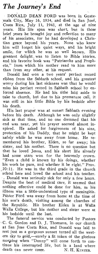 7047. “The Journey’s End,” Donald Dean Ford, Inter-American Division Messenger, 21, 2, Cristobal, Canal Zone, Panama, Central America, February 1944, 11, N. H. Kinzer, http://docs.adventistarchives.org/docs/IAM/IAM19440201-V21-02__B.pdf.