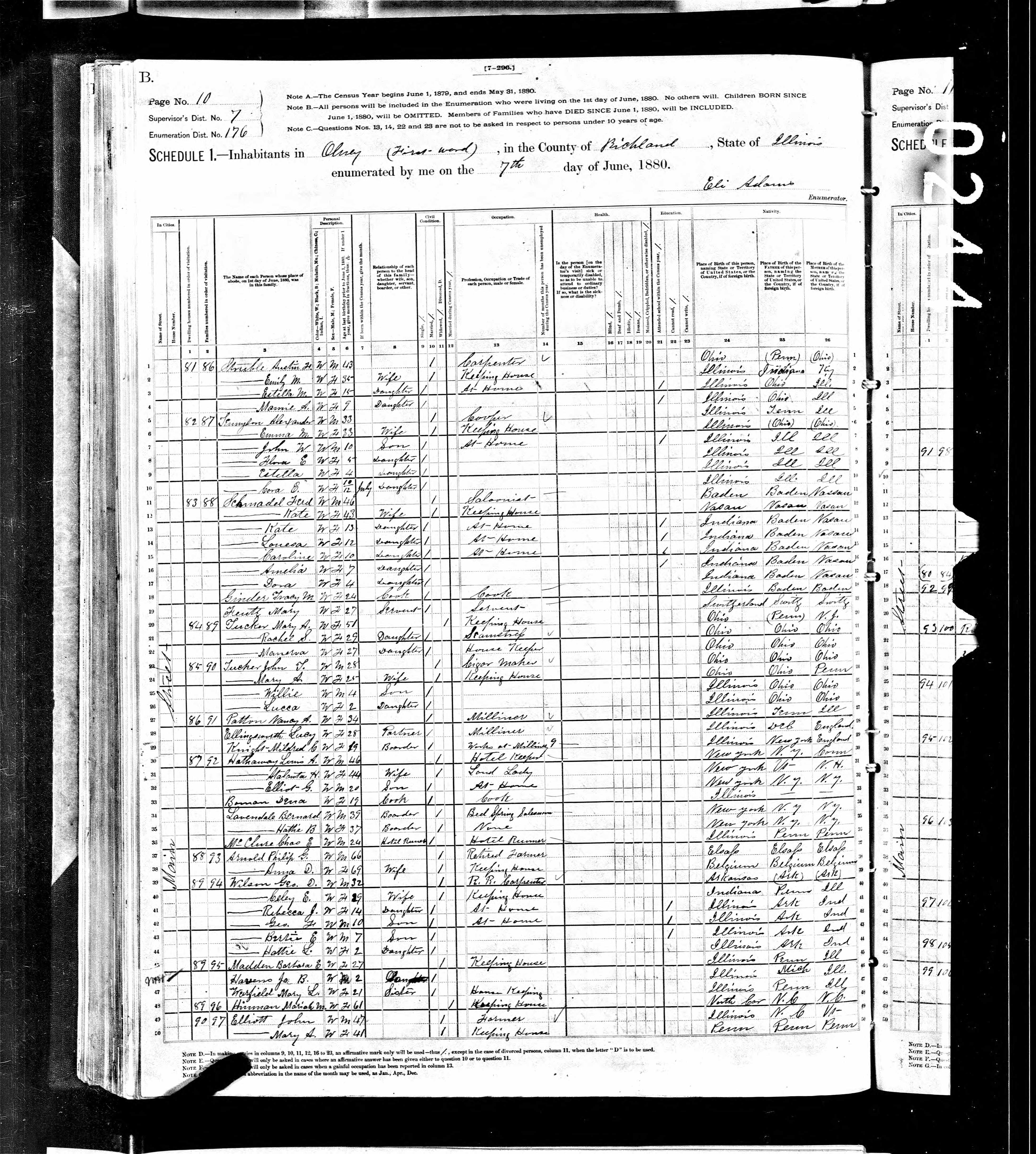 7753. “United States Census,” 1880, IL, Richland, Olney, Ward 1, 10B, 7, 176, T9, 245, 257, Bureau of the Census, US Dept. of Commerce, United States of America, June 7, 1880, Eli Adams.