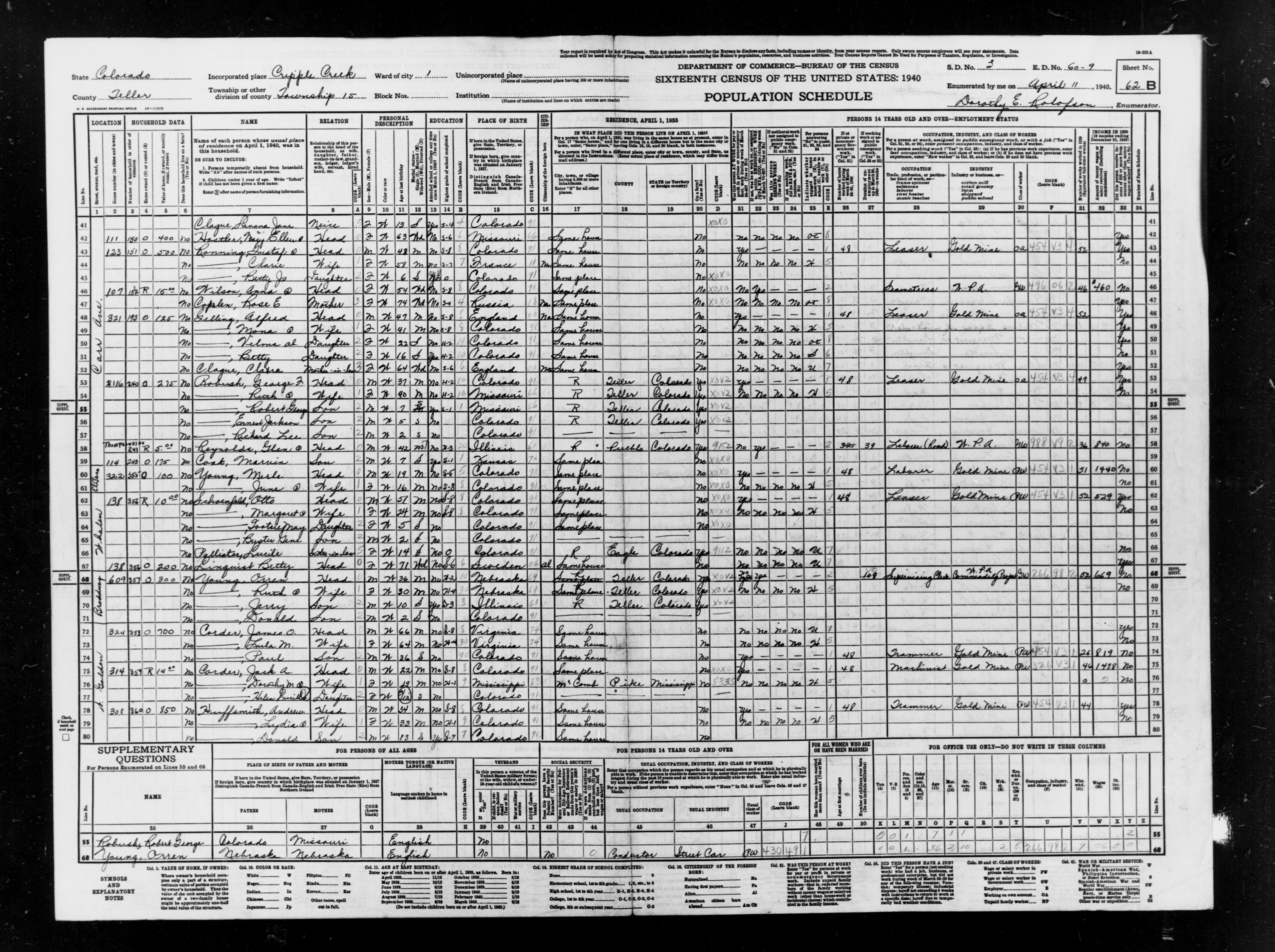 File: 1940 CO Teller County Cripple Creek Ward 1 p62B